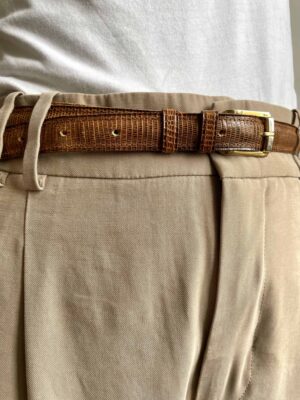 Cintura vintage in vera pelle di rettile marrone chiaro e fibbia oro