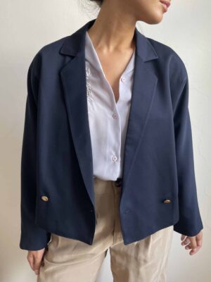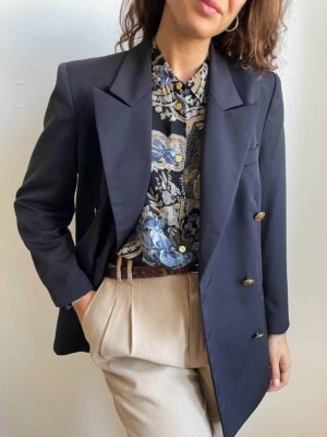 Blazer vintage misto viscosa blu con bottoni a conchiglia