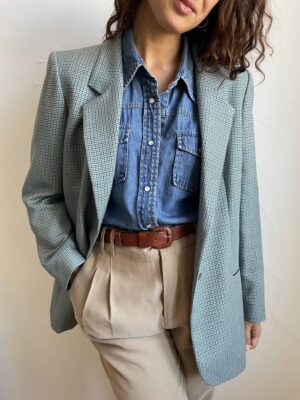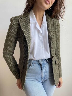 Blazer vintage 100% lana sottile pied de poule verde salvia
