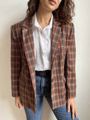 Blazer vintage 100% lana vergine autunnale marrone rosso e viola