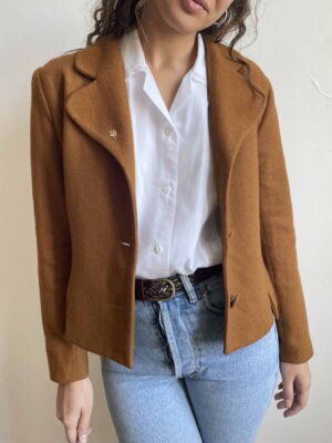 Giacca vintage da donna in 70% lana marrone ocra
