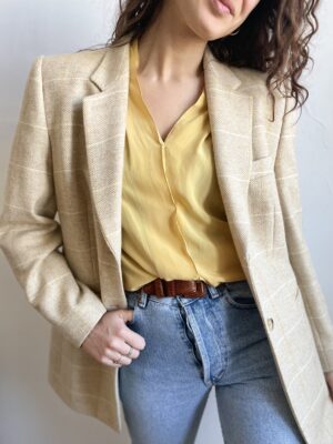 Blazer vintage 100% lana spigata beige e giallo pastello