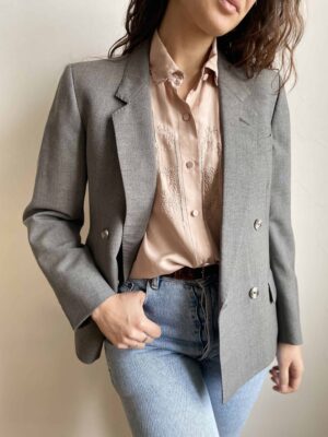 Blazer vintage perfetto in fresco lana grigio perla doppiopetto
