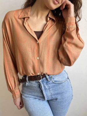 Camicia vintage 100% viscosa etnica arancio corallo