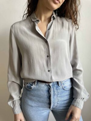Camicia vintage 100% seta extra morbida grigio perla colletto tondo