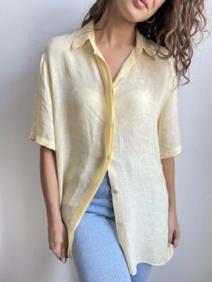 Camicia vintage giallo pastello in pregiato cupro con madreperle