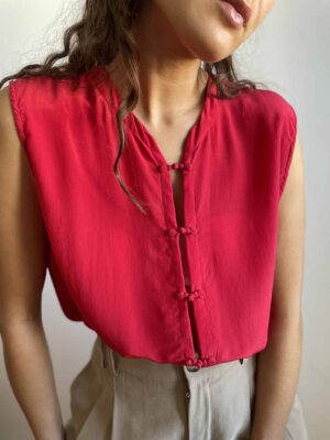 Camicetta vintage asiatica smanicata 100% seta rossa