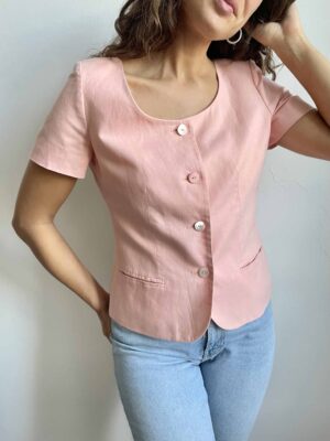 Giacchetta vintage maniche corte in lino e cotone rosa pastello