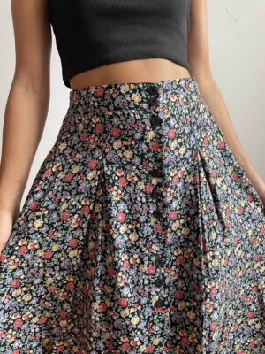 Gonna midi vintage viscosa nera piccoli fiori viola tg 42 e 44