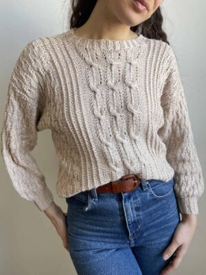 Maglione vintage fatto a mano morbida lana merino beige a trecce