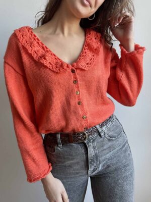 Cardigan vintage fatto a mano arancione collo crochet acrilico