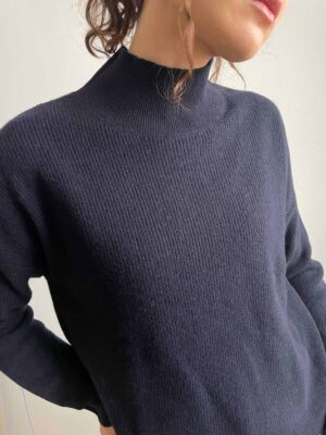 Maglione lupetto nuovo Made in Italy 100% lana merino blu navy