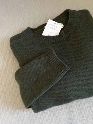 Maglione girocollo nuovo Made in Italy 100% lana merino oliva