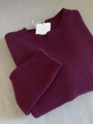 Maglione girocollo nuovo Made in Italy 100% lana merino vinaccia