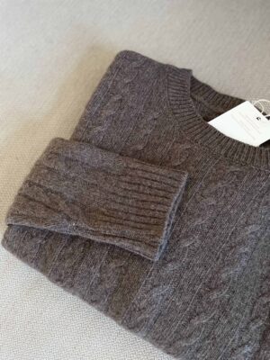 Maglione nuovo Made in Italy 100% lana merino a trecce tortora