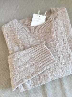 Maglione nuovo Made in Italy 100% lana merino a trecce beige