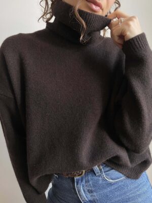 Maglione dolcevita Made in Italy 100% lana merino cioccolato