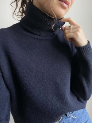 Maglione dolcevita nuovo Made in Italy 100% lana merino blu navy