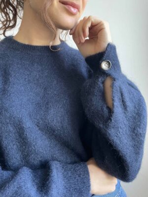 Maglione nuovo Made in Italy in misto lana e kid mohair blu