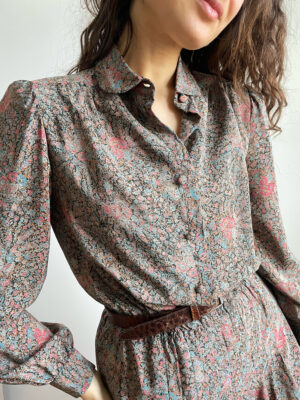 Abito chemisier vintage in pregiata 100% pura seta multicolore