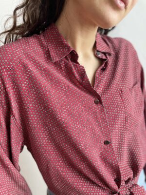 Camicia vintage 100% seta rosso scuro a pois neri