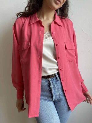 Camicia vintage in 100% seta naturale a costine fuxia