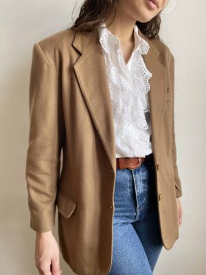 Blazer vintage in pregiato cashmere e lana marrone/kaki