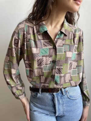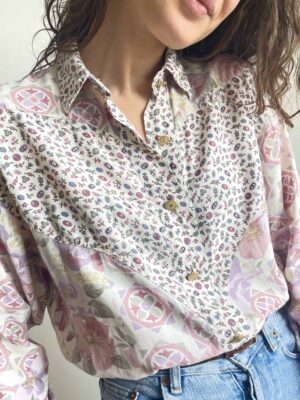 Camicia vintage 100% viscosa fantasia etnica e a fiori pastello