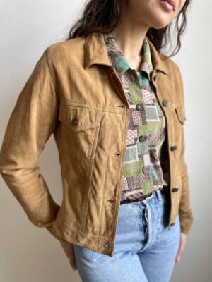 Giacca vintage crop in vera pelle scamosciata marrone chiaro