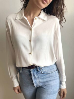 Camicia vintage 100% viscosa bianca con bottoni dorati