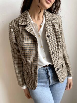 Giacchetta vintage 100% lana pied de poule crop e sfiancata