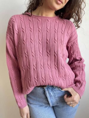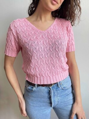 Maglioncino vintage crop a trecce in cotone e modal rosa