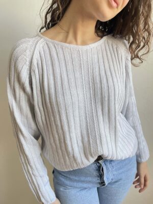 Maglione vintage in misto cotone viscosa e pregiata ramia ghiaccio