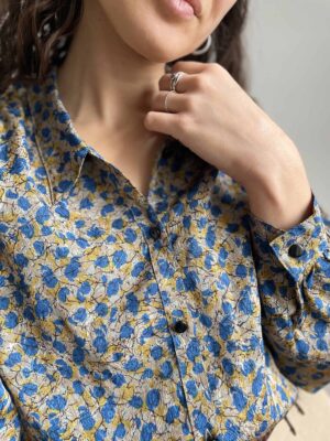 Splendida camicia vintage con fantasia luminosa gialla e bluette