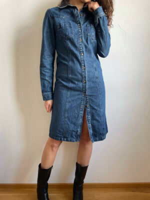 Abito chemisier longuette manica lunga in jeans di cotone blu