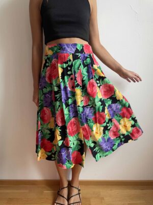 Gonna midi vintage anni 80 nera a fiori grandi colorati tg 44 e 46
