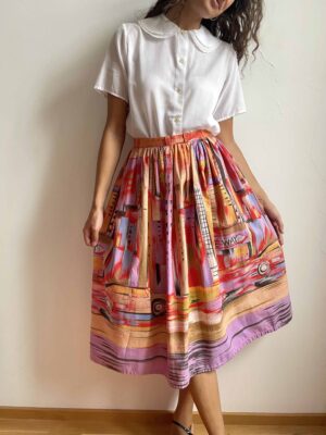 Gonna midi vintage in 100% cotone colorato fantasia futurista tg 42
