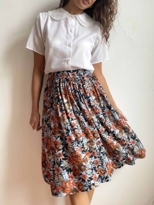 Gonna al ginocchio vintage viscosa nera fiori arancio tg 40