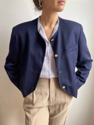 Blazer vintage misto viscosa blu con bottoni a conchiglia