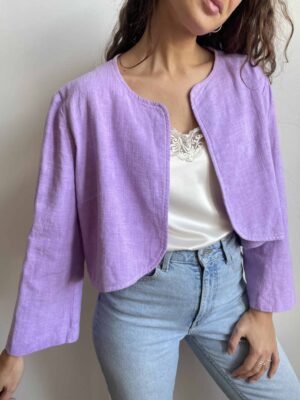 Giacca vintage crop 100% lino in raro color lilla/glicine