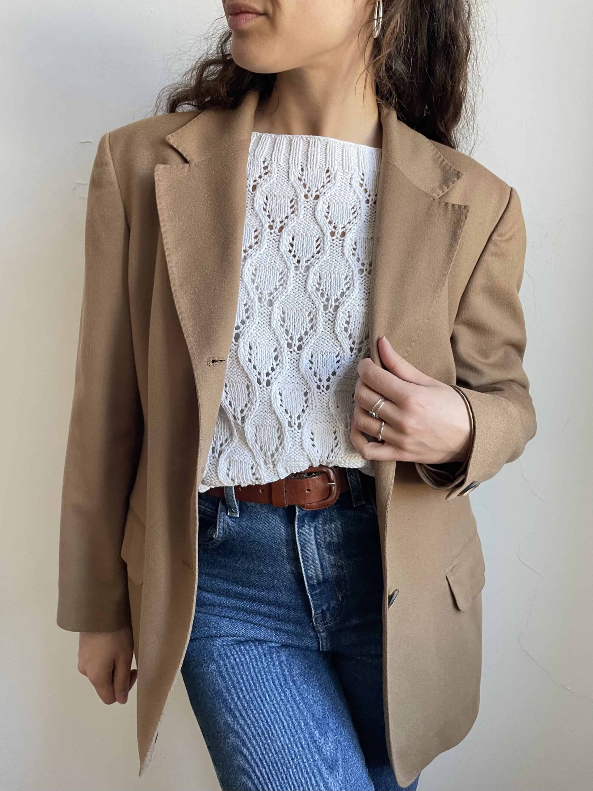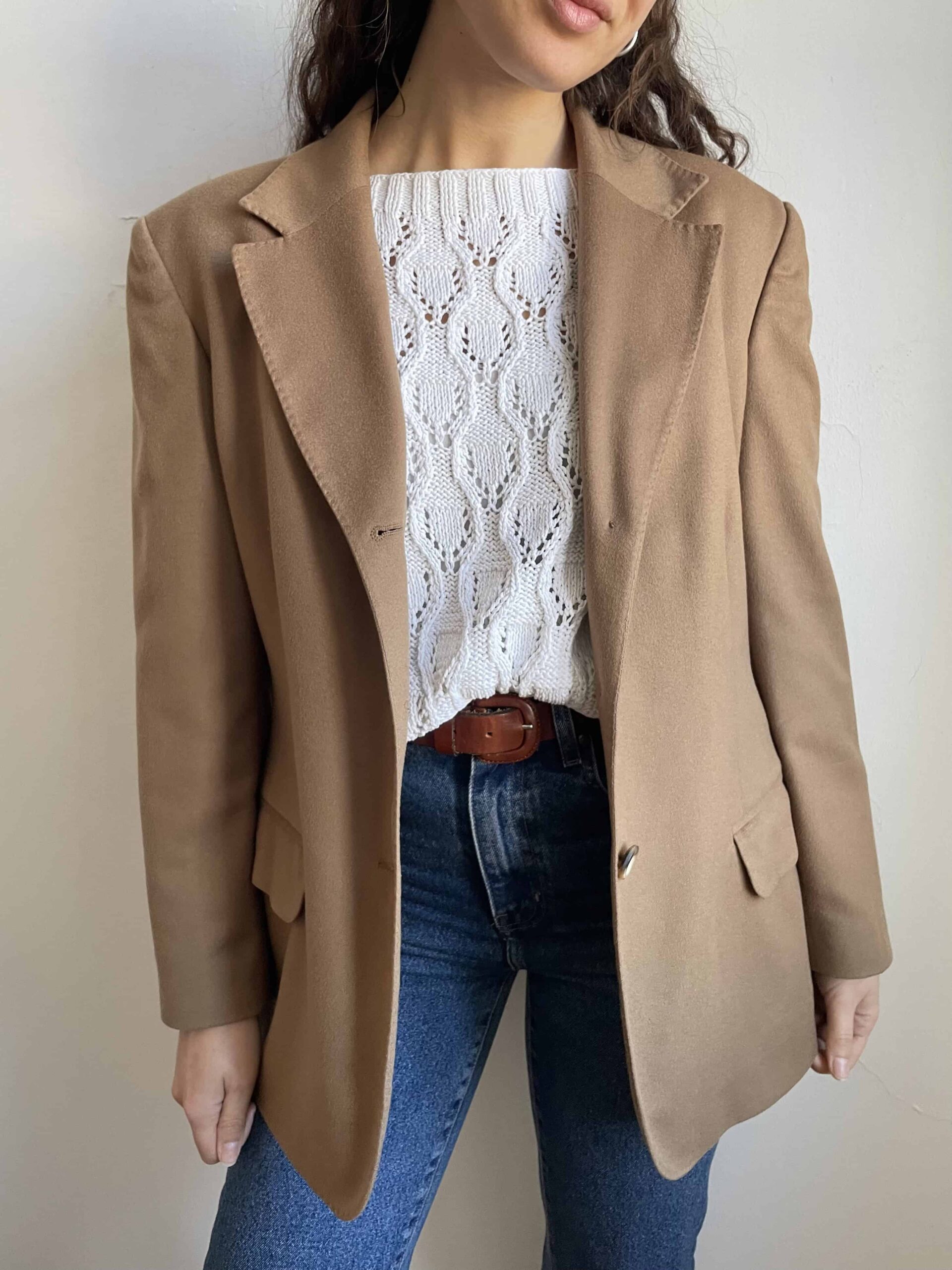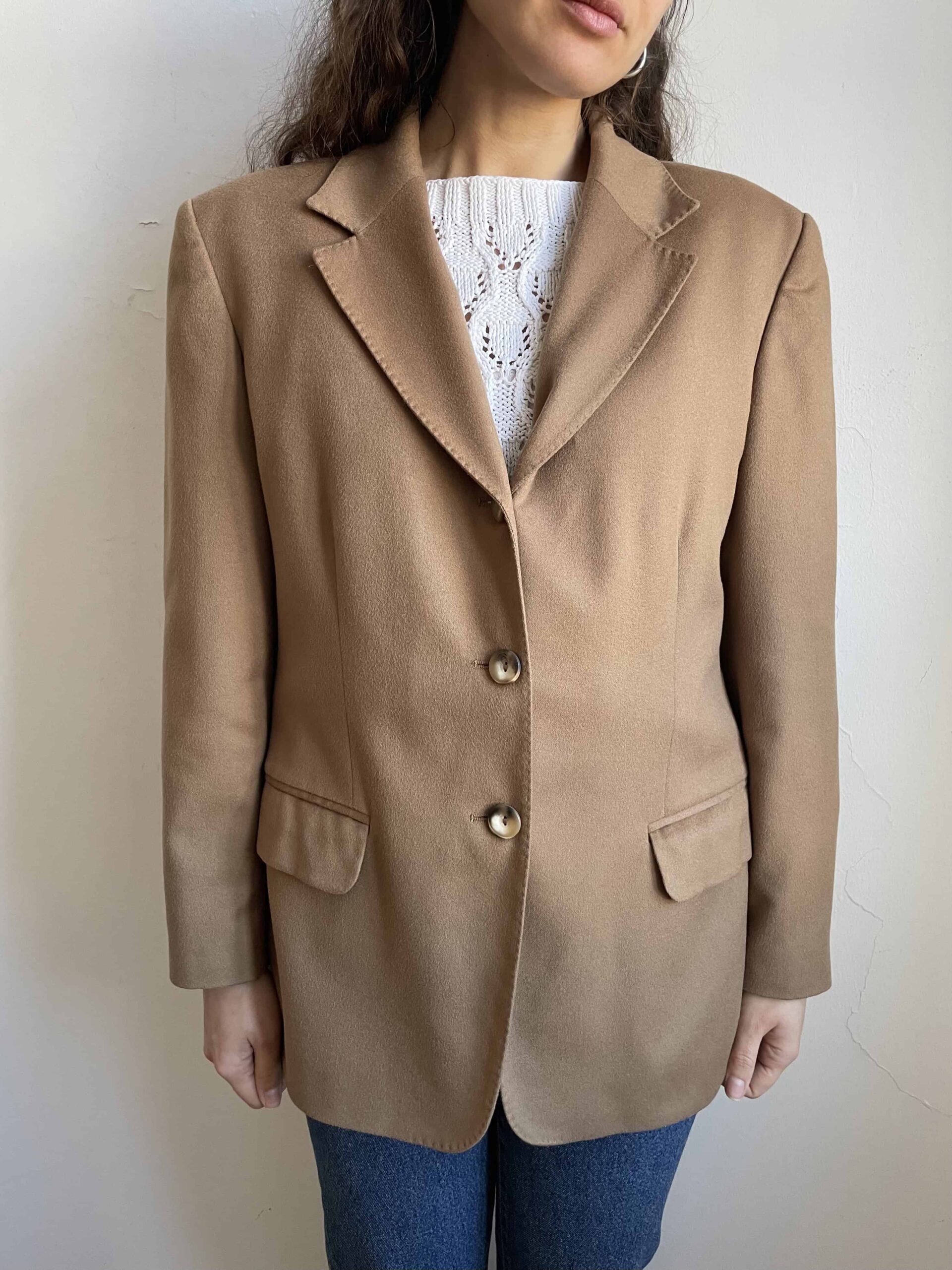 Blazer vintage 100% lana beige alta qualità effetto cashmere