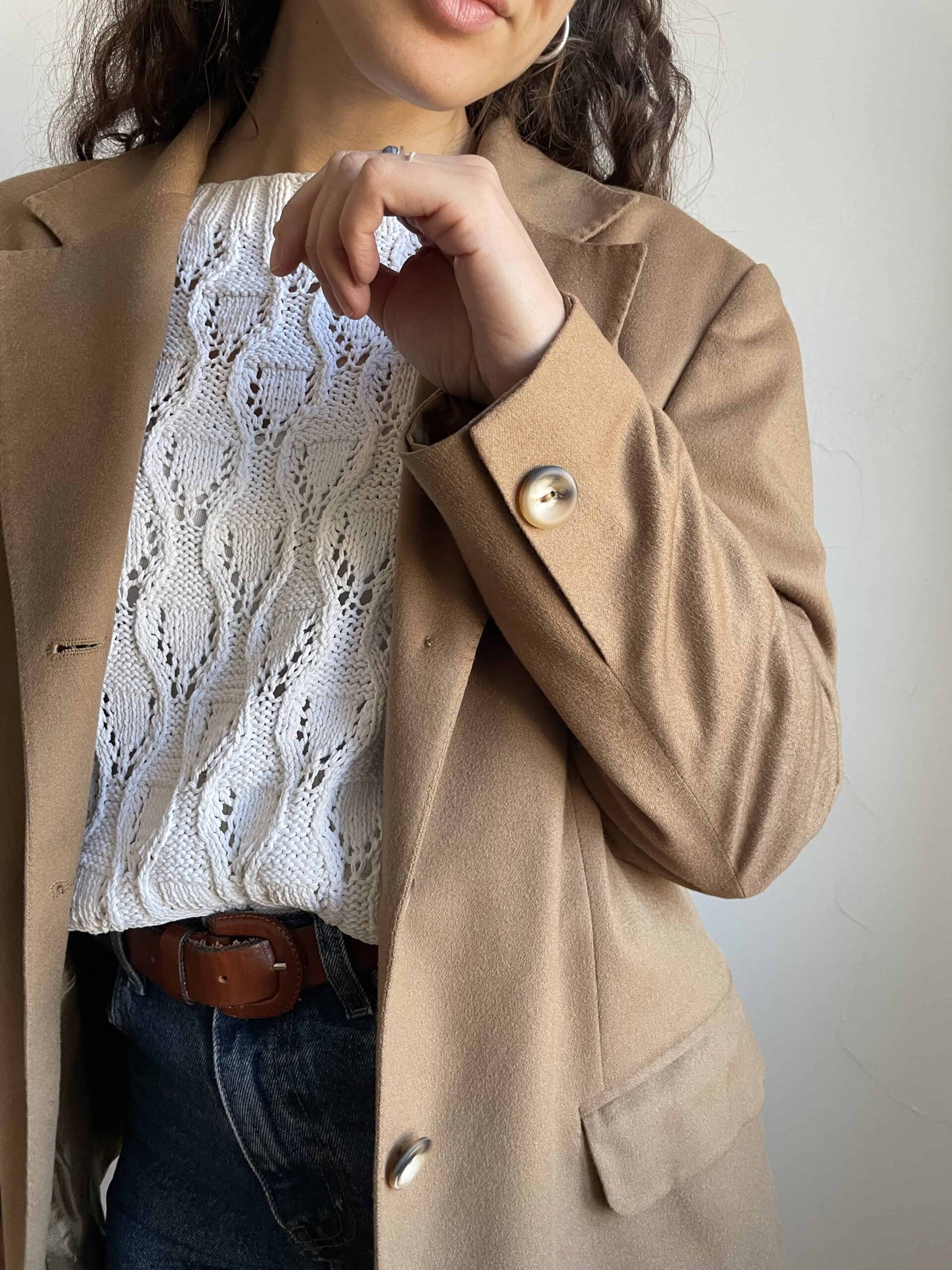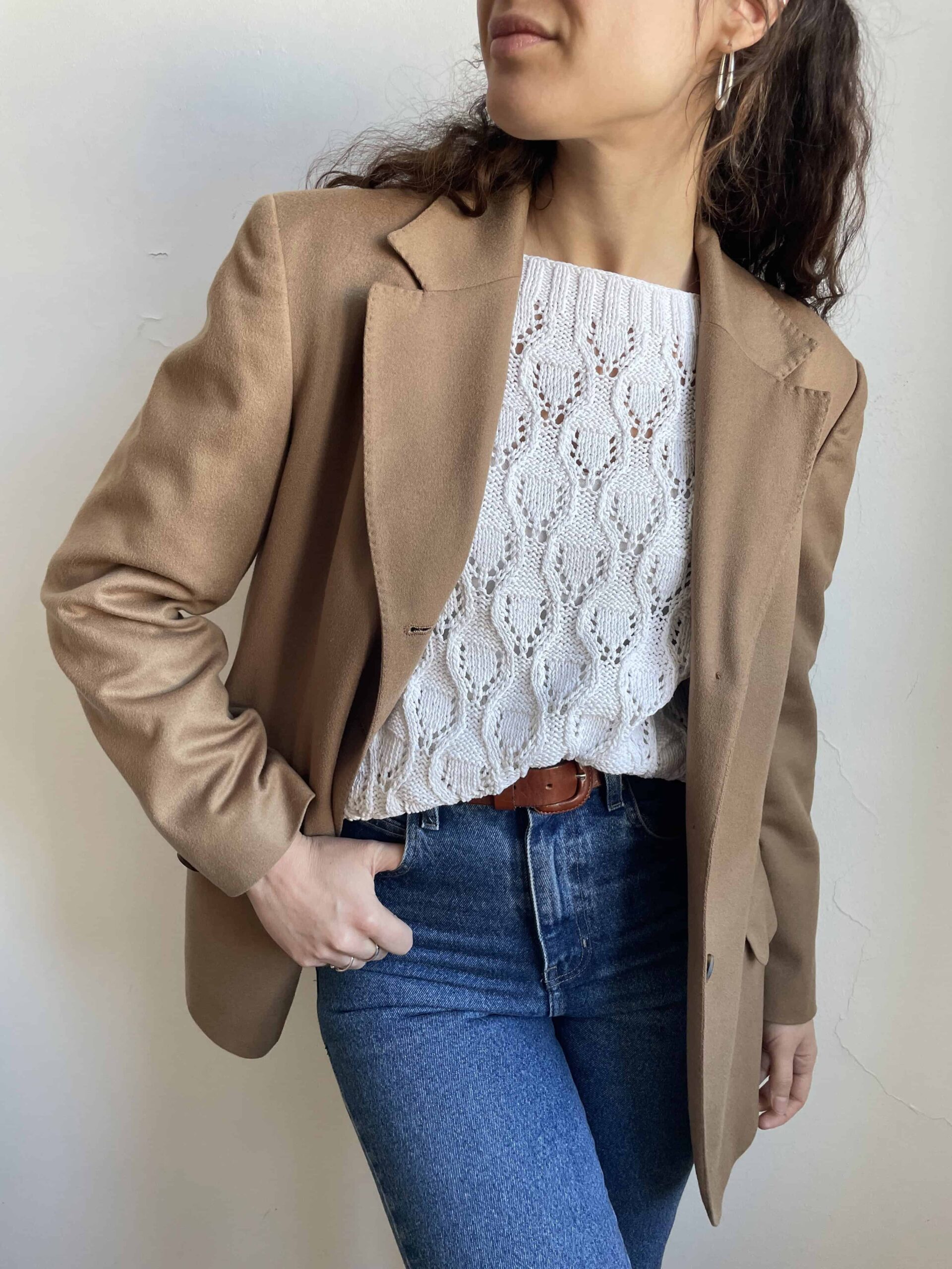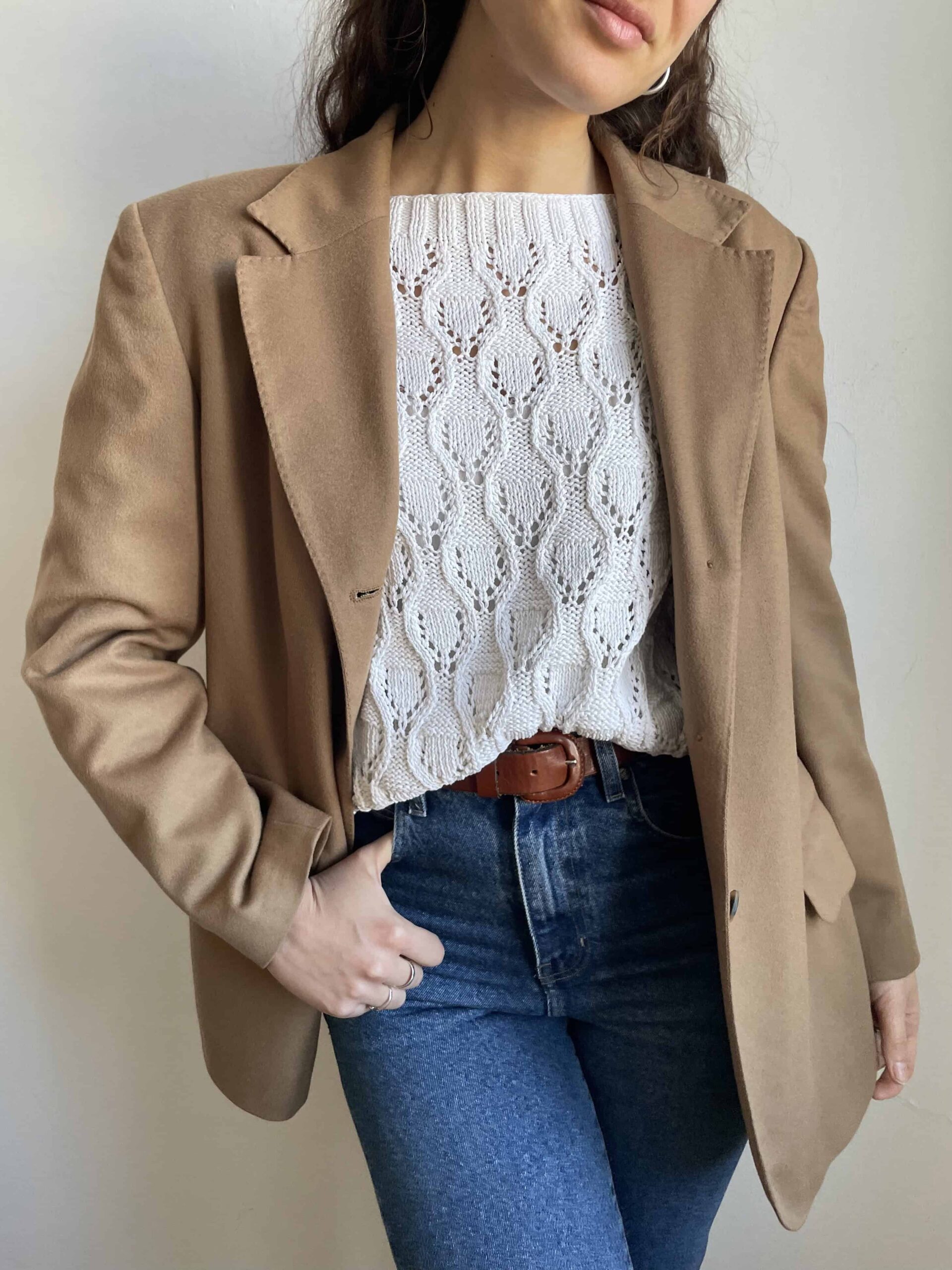 Blazer vintage 100% lana beige alta qualità effetto cashmere