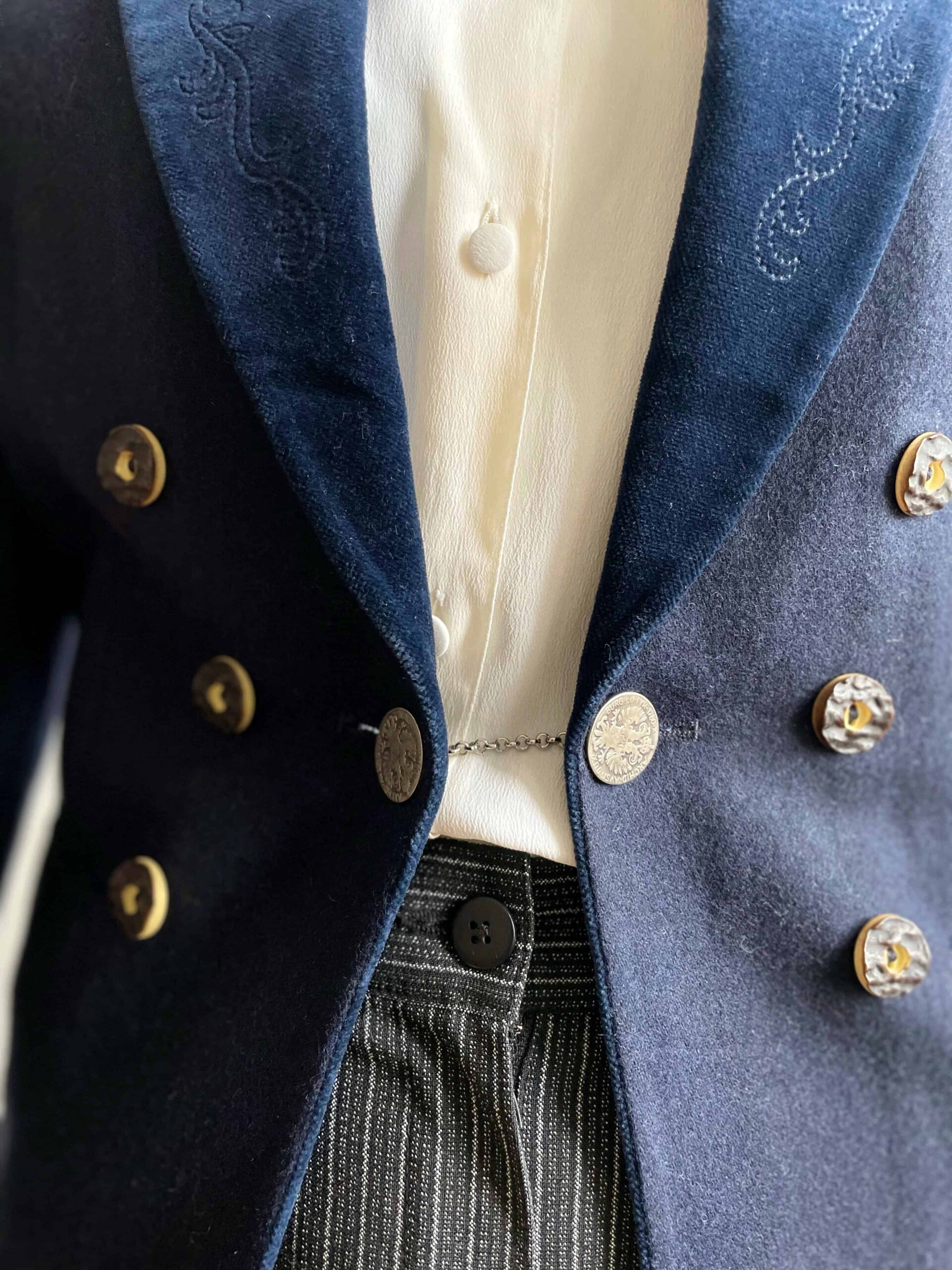 Rara giacca vintage originale austriaca in lana e velluto blu