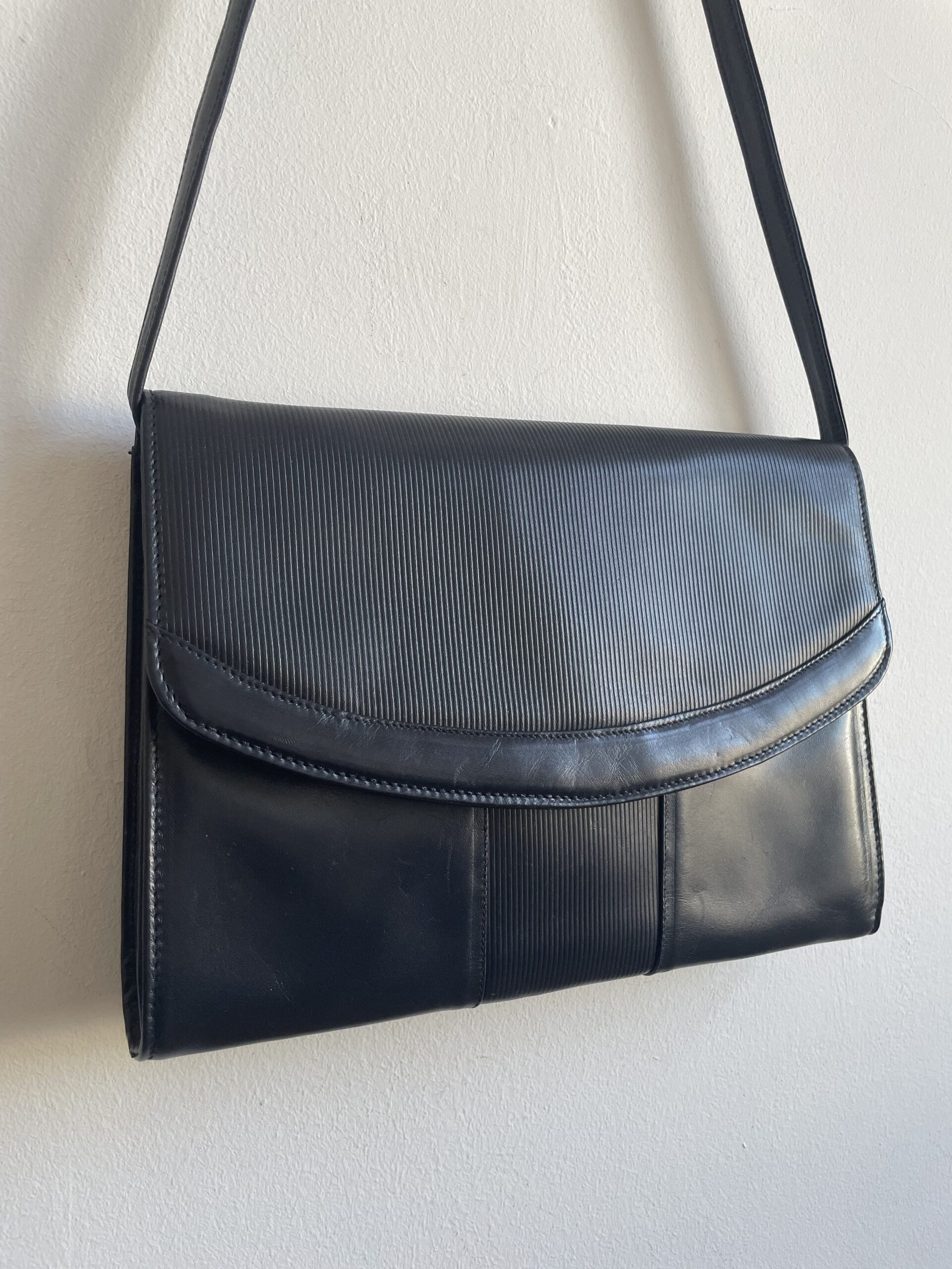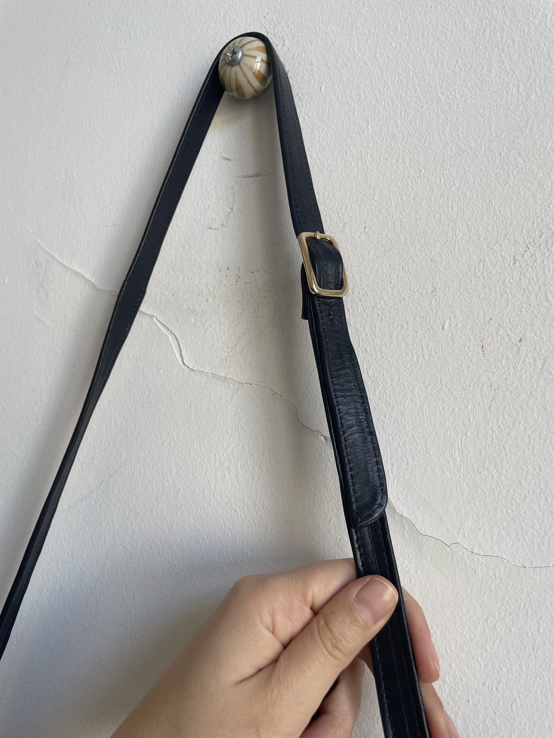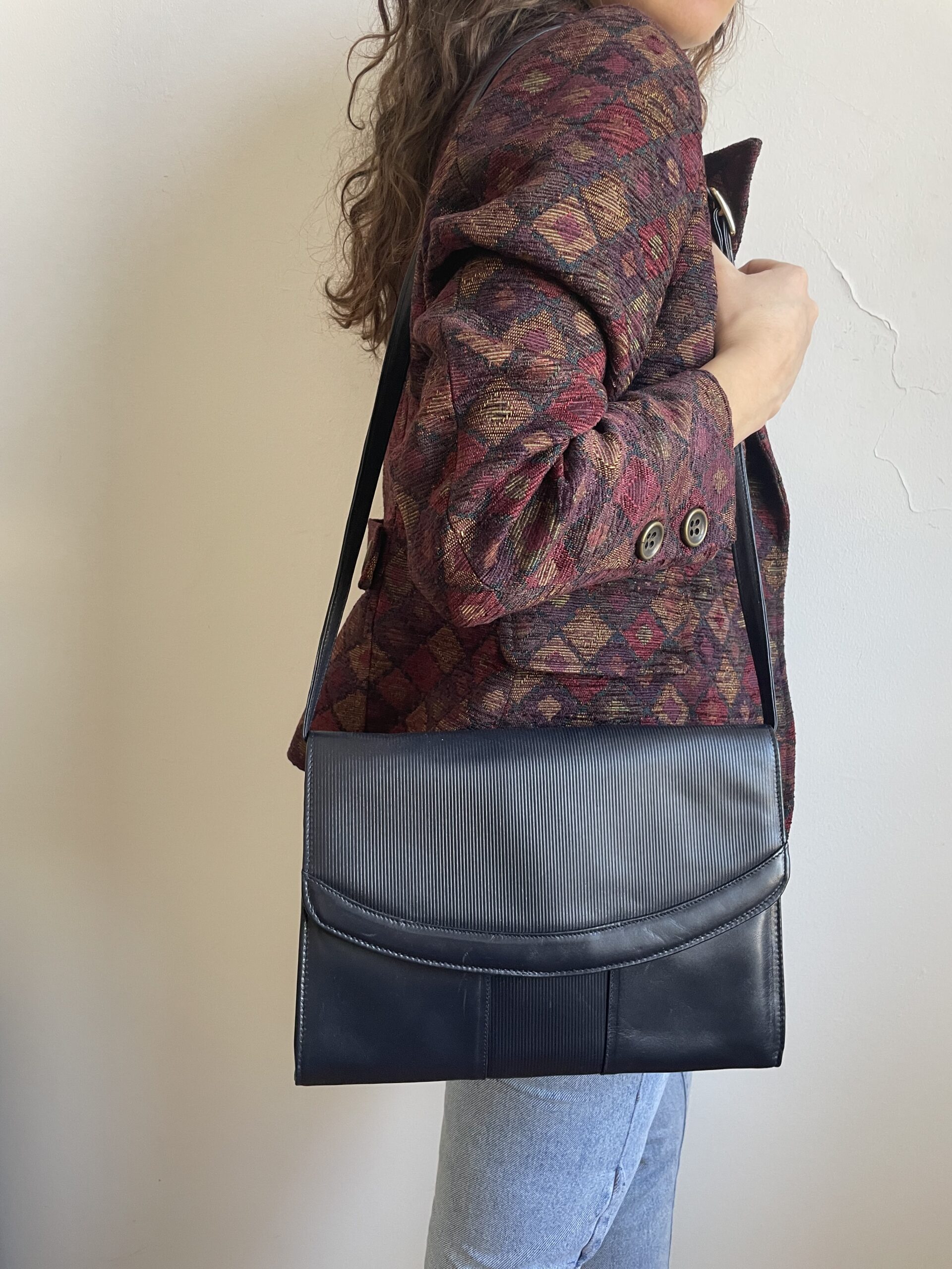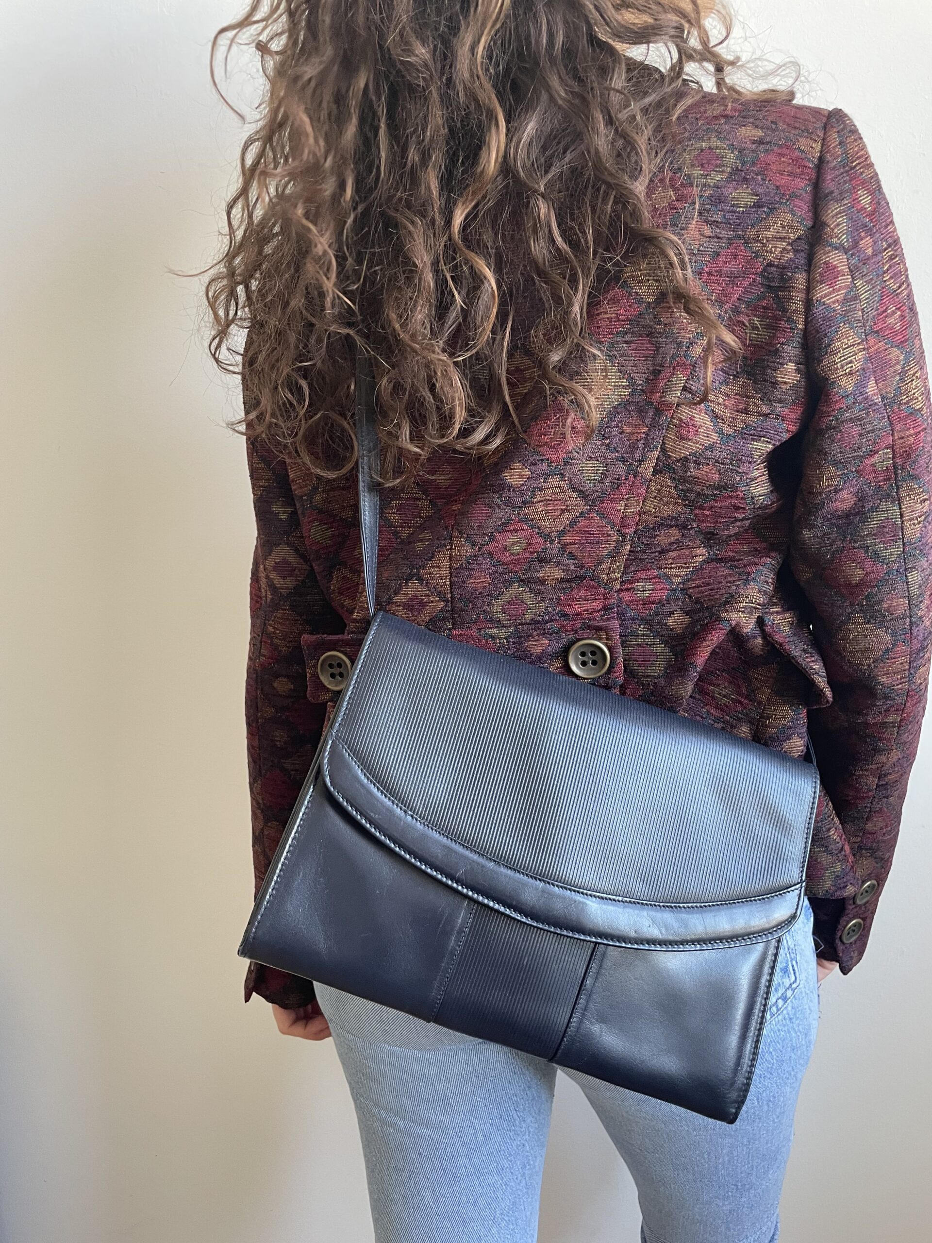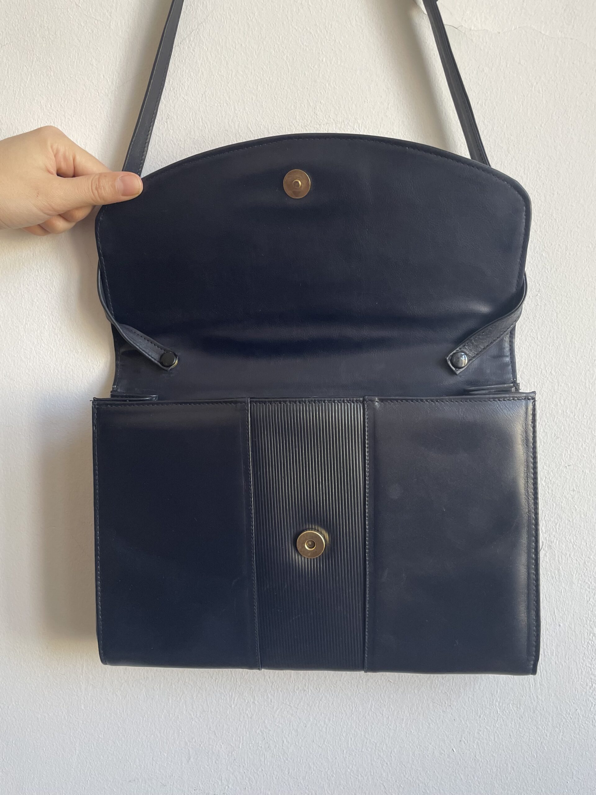 Borsa vintage tracolla rettangolare vera pelle blu scuro