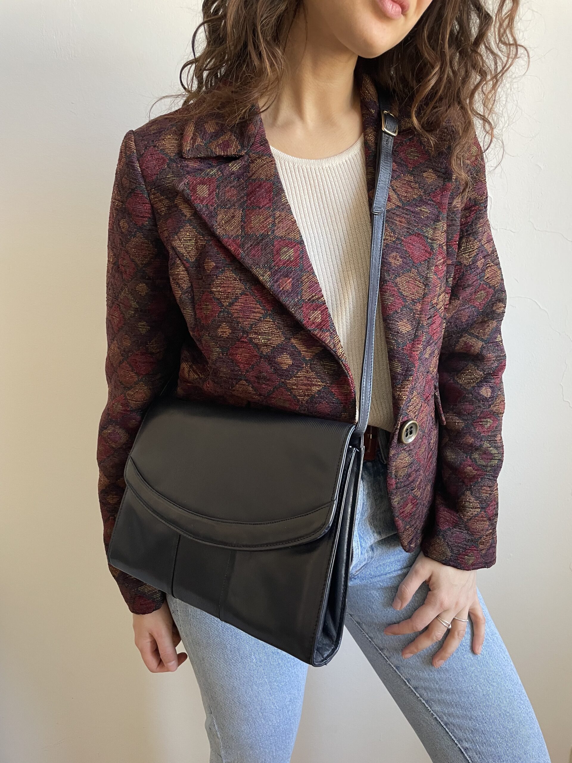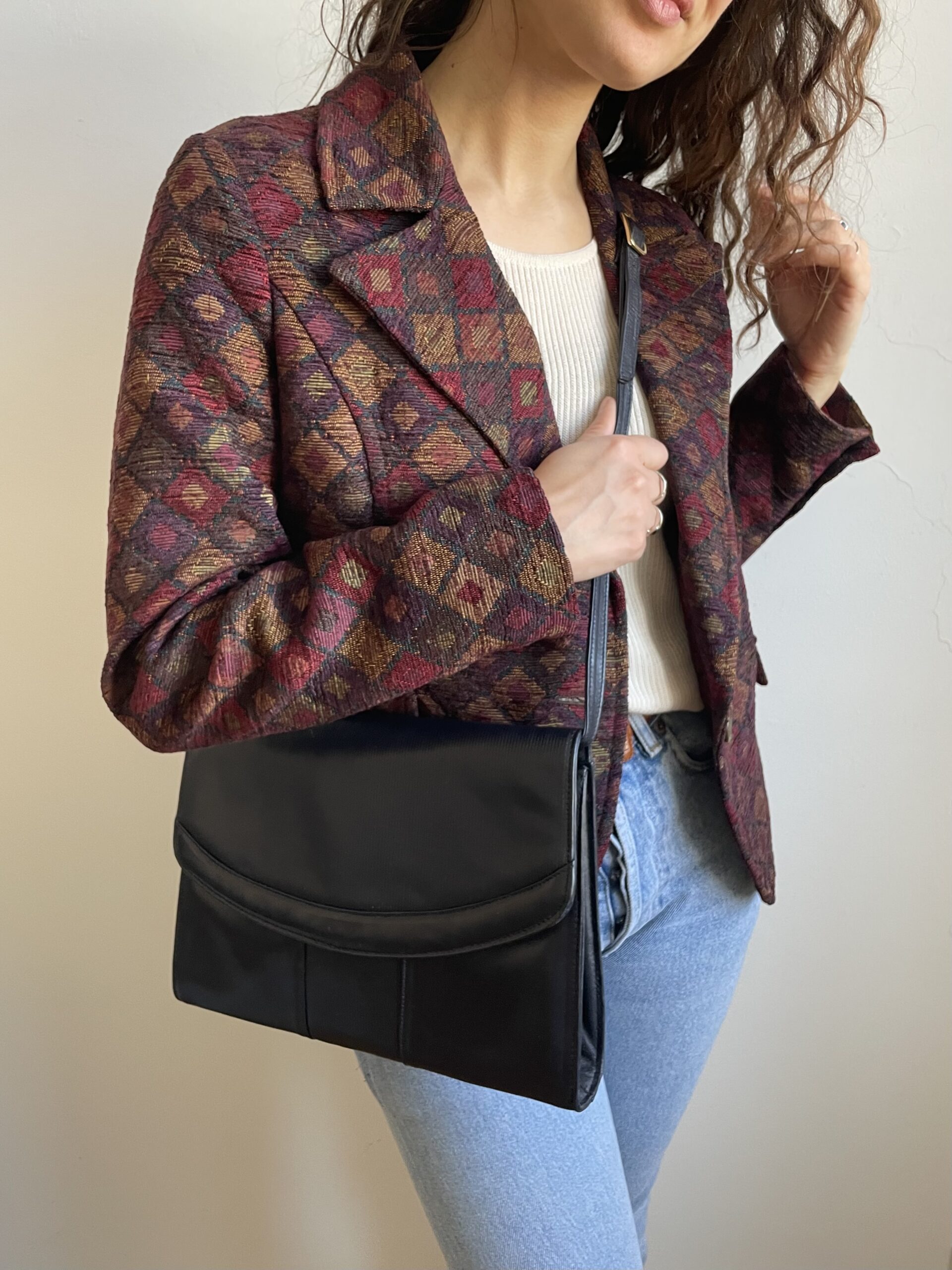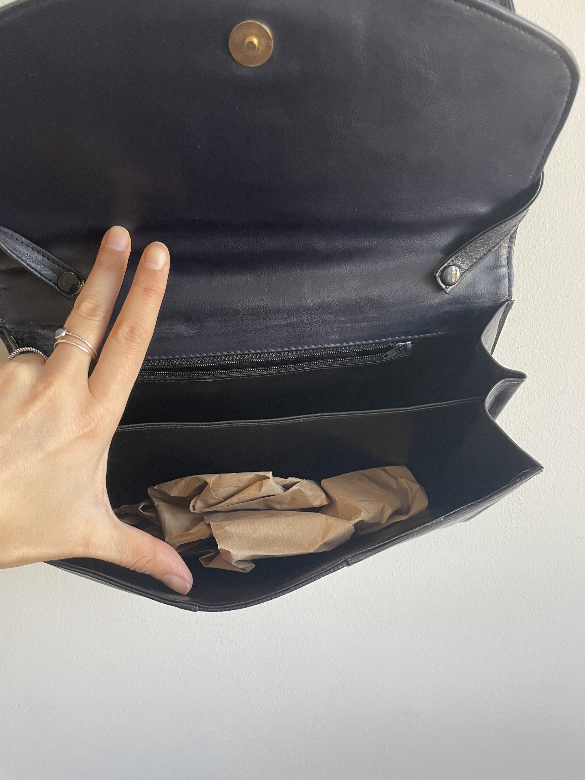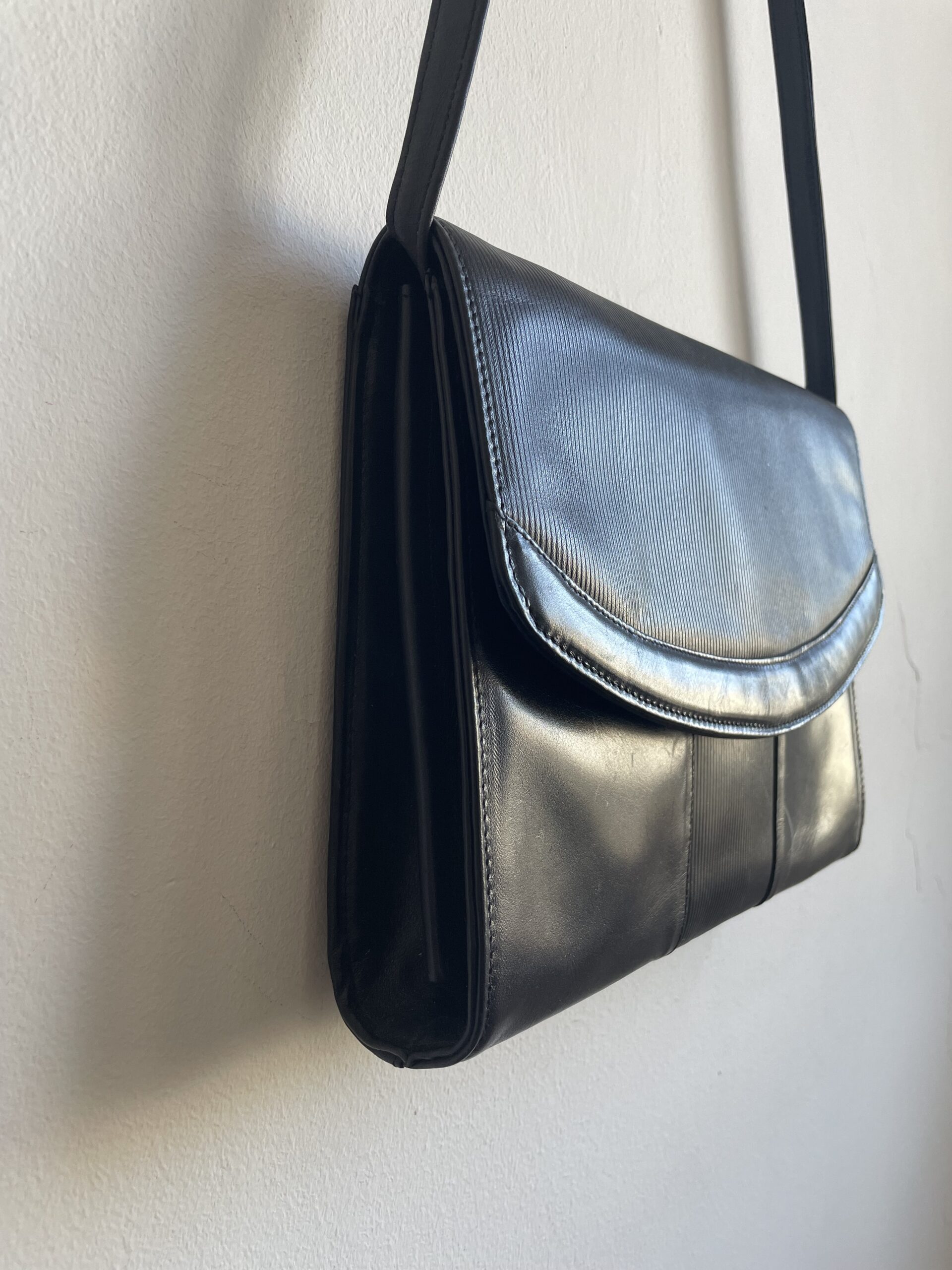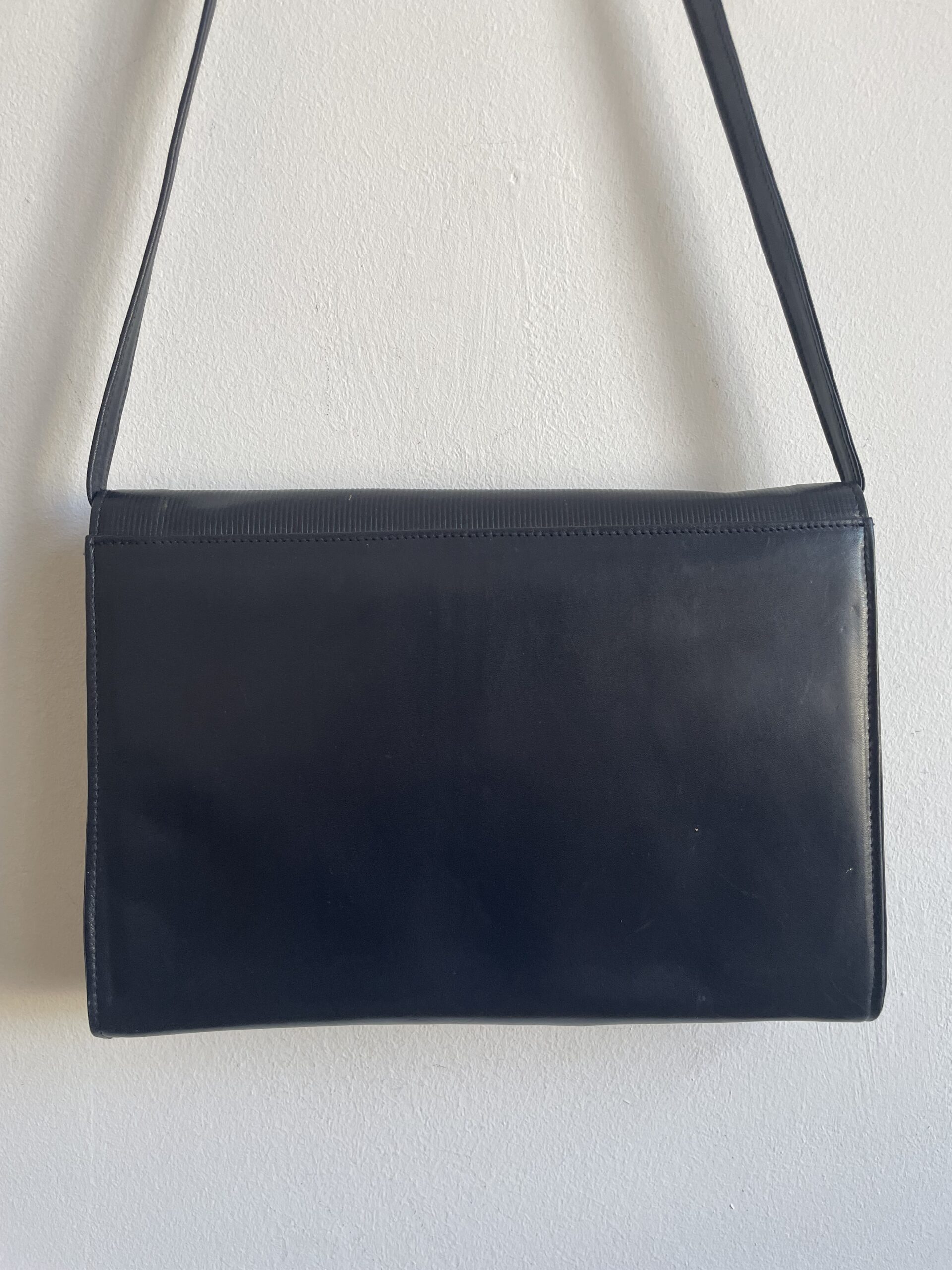 Borsa vintage tracolla rettangolare vera pelle blu scuro