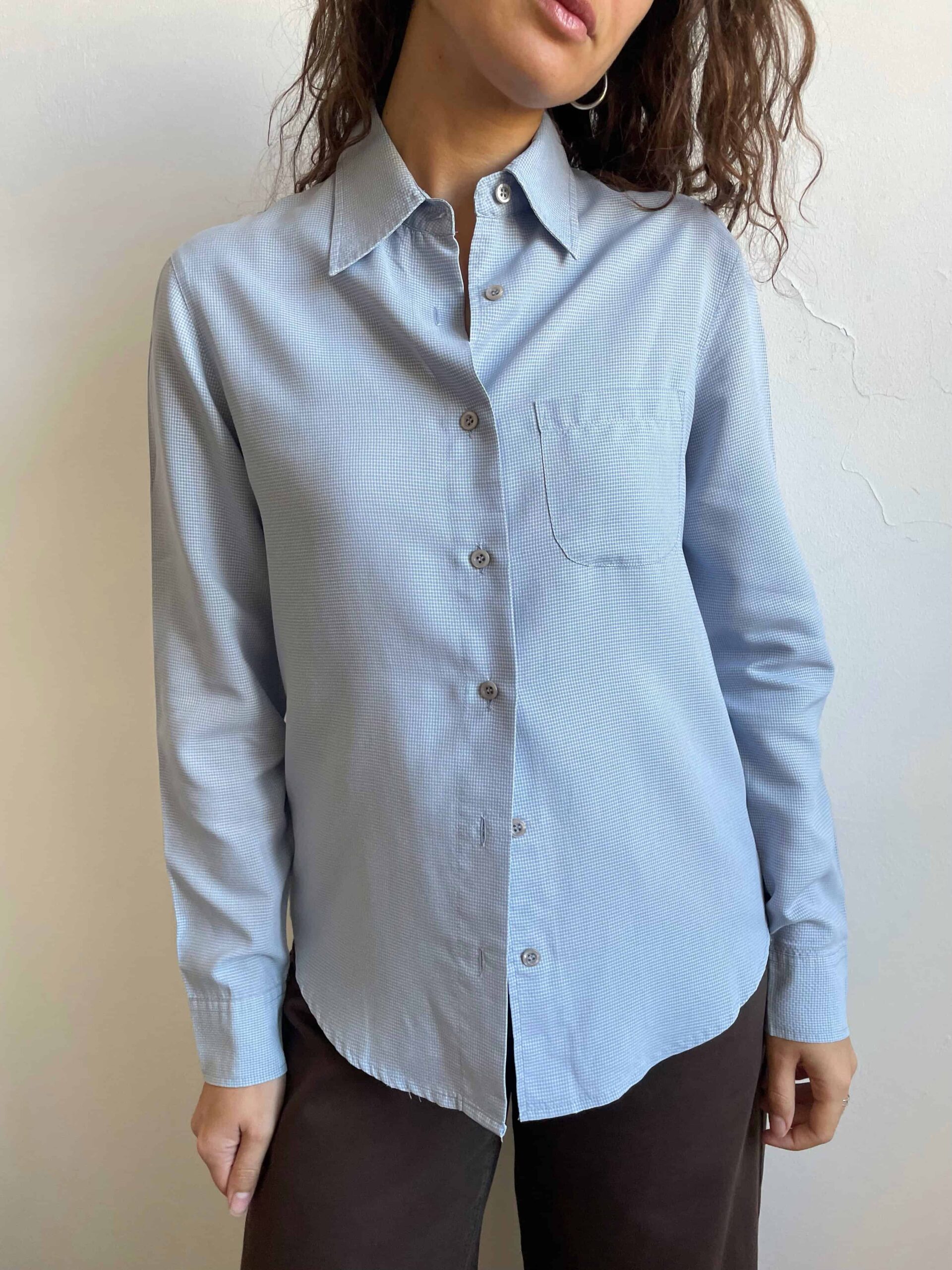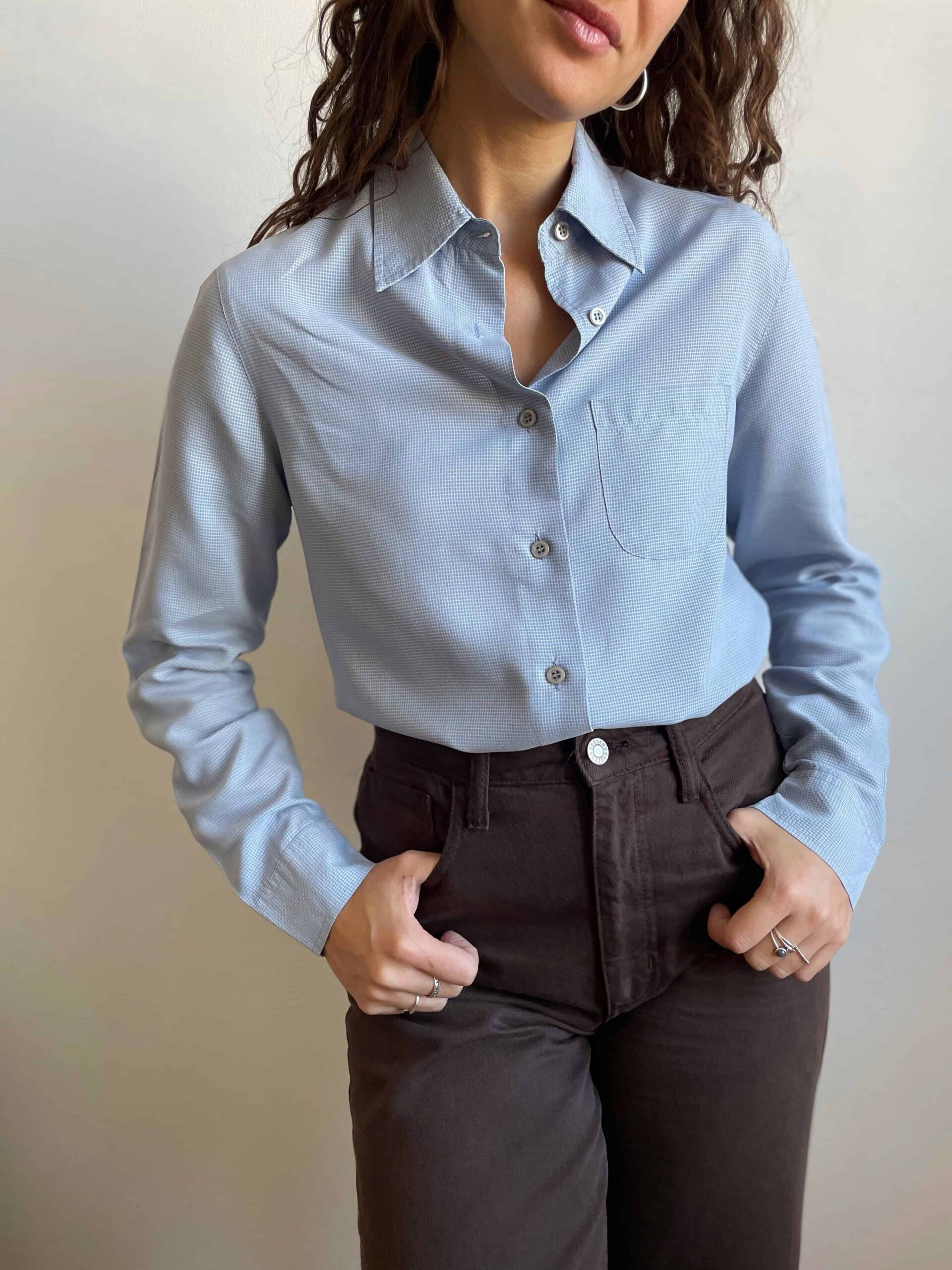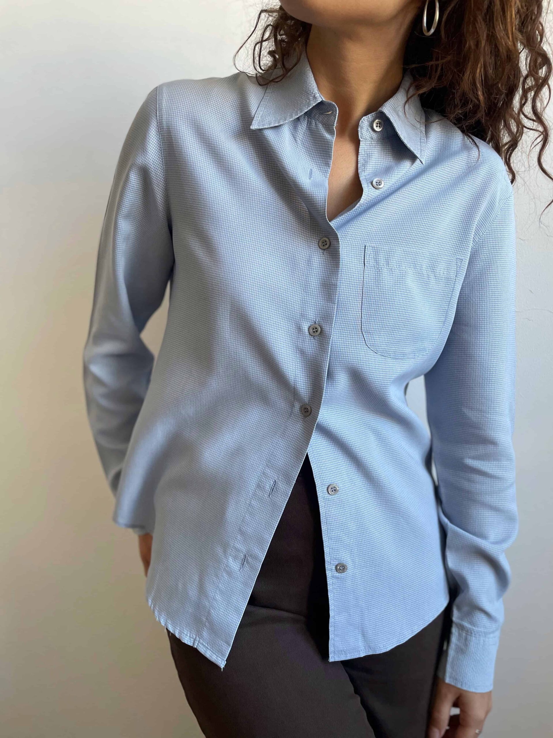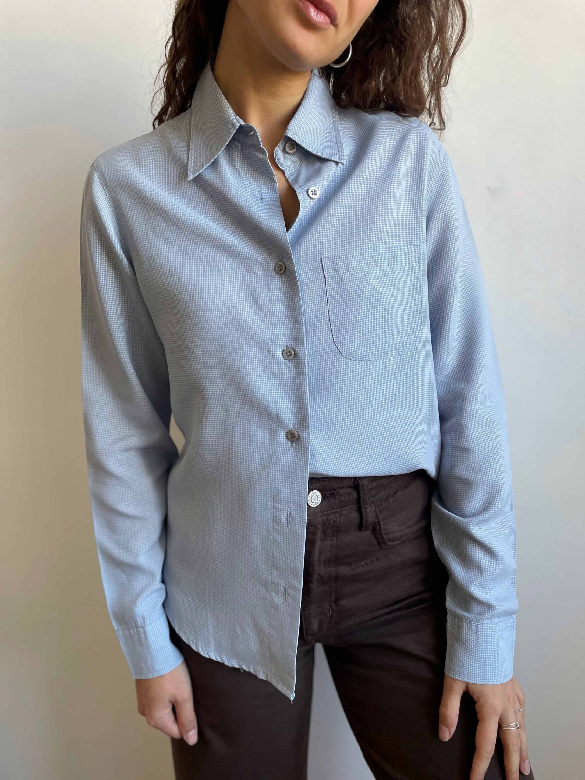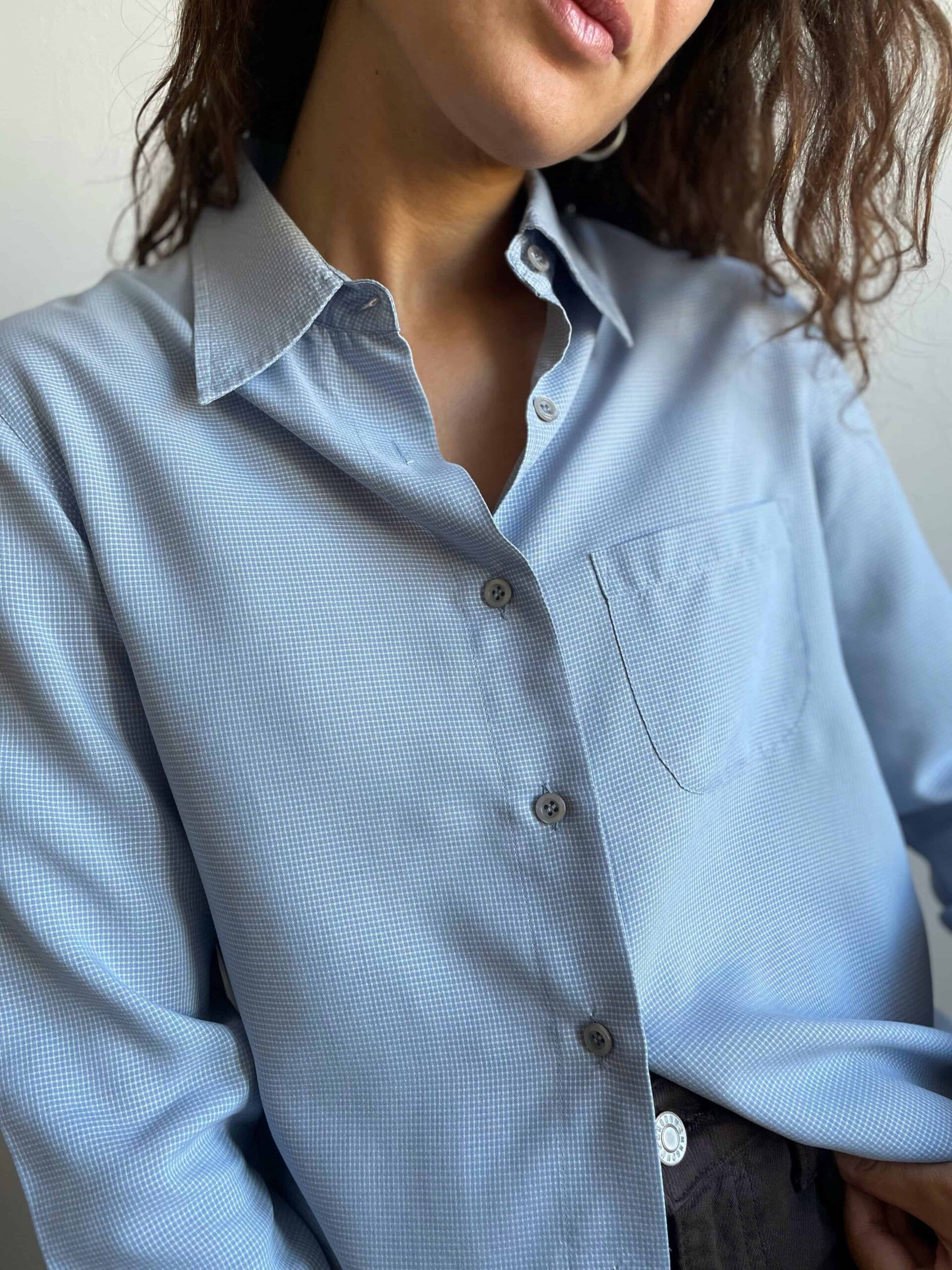 Camicia vintage Armani 100% cupro quadratini celesti e bianchi