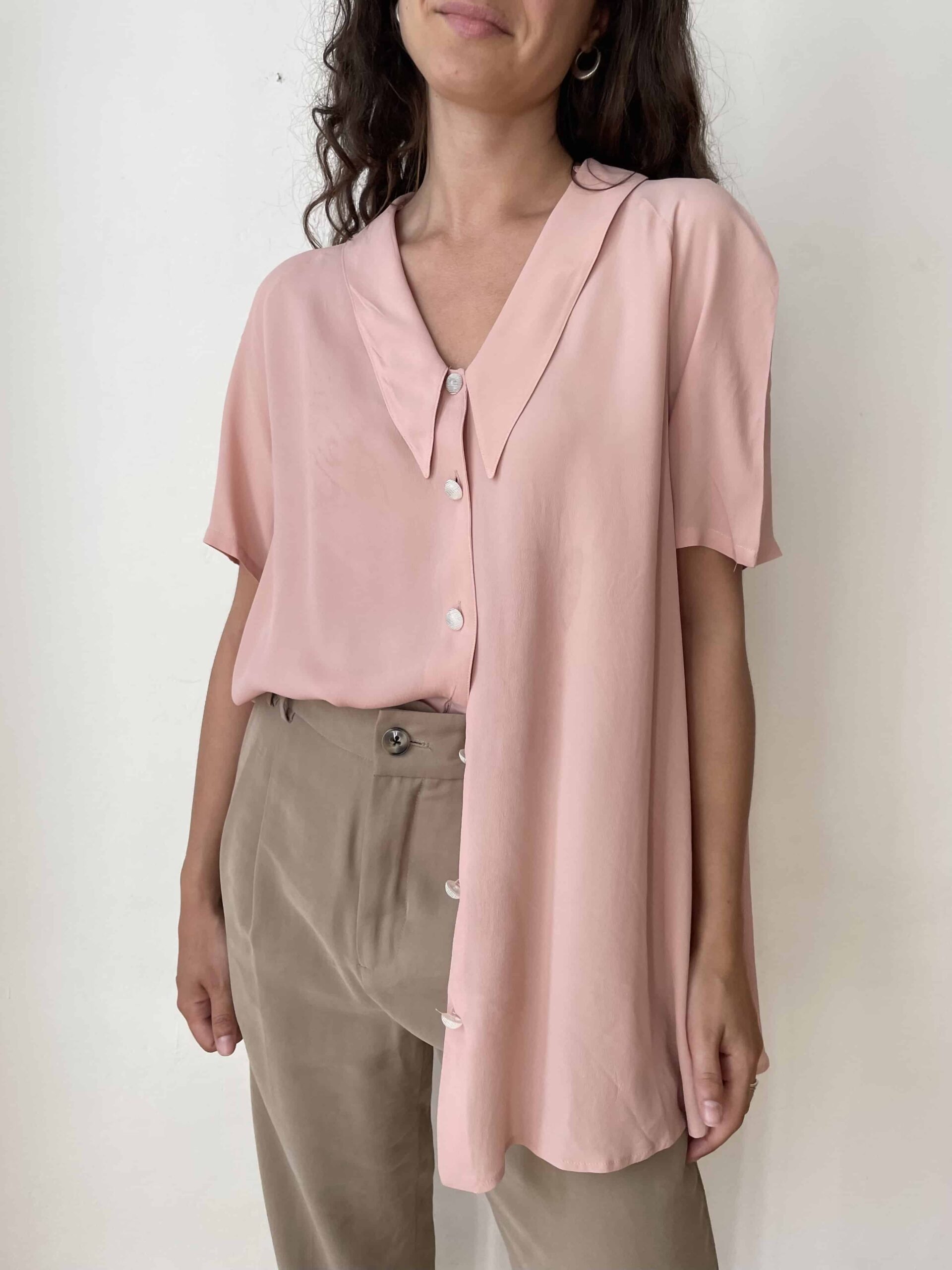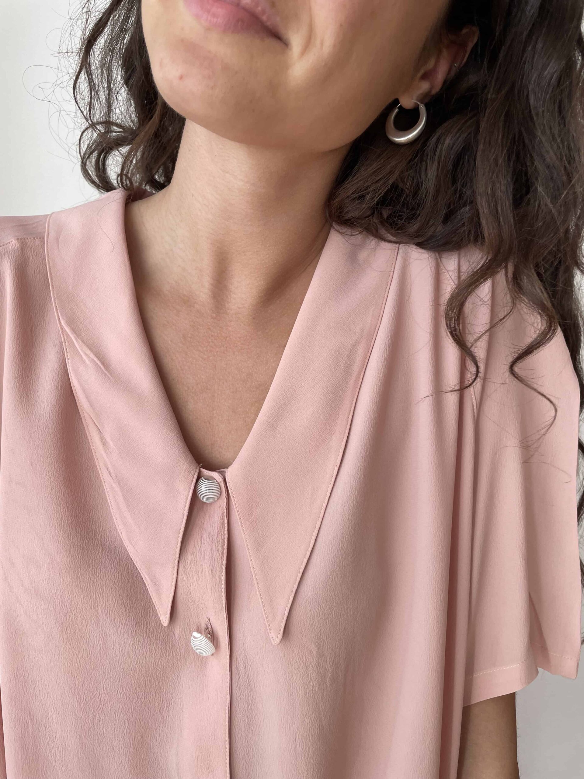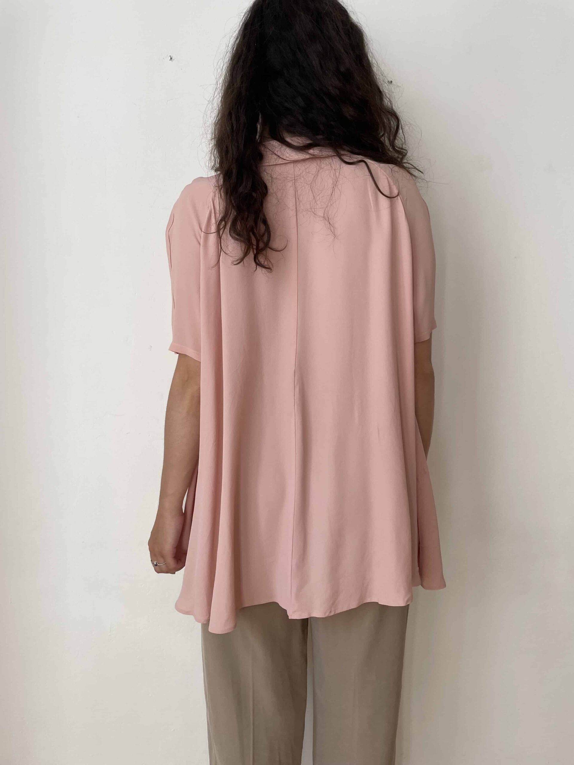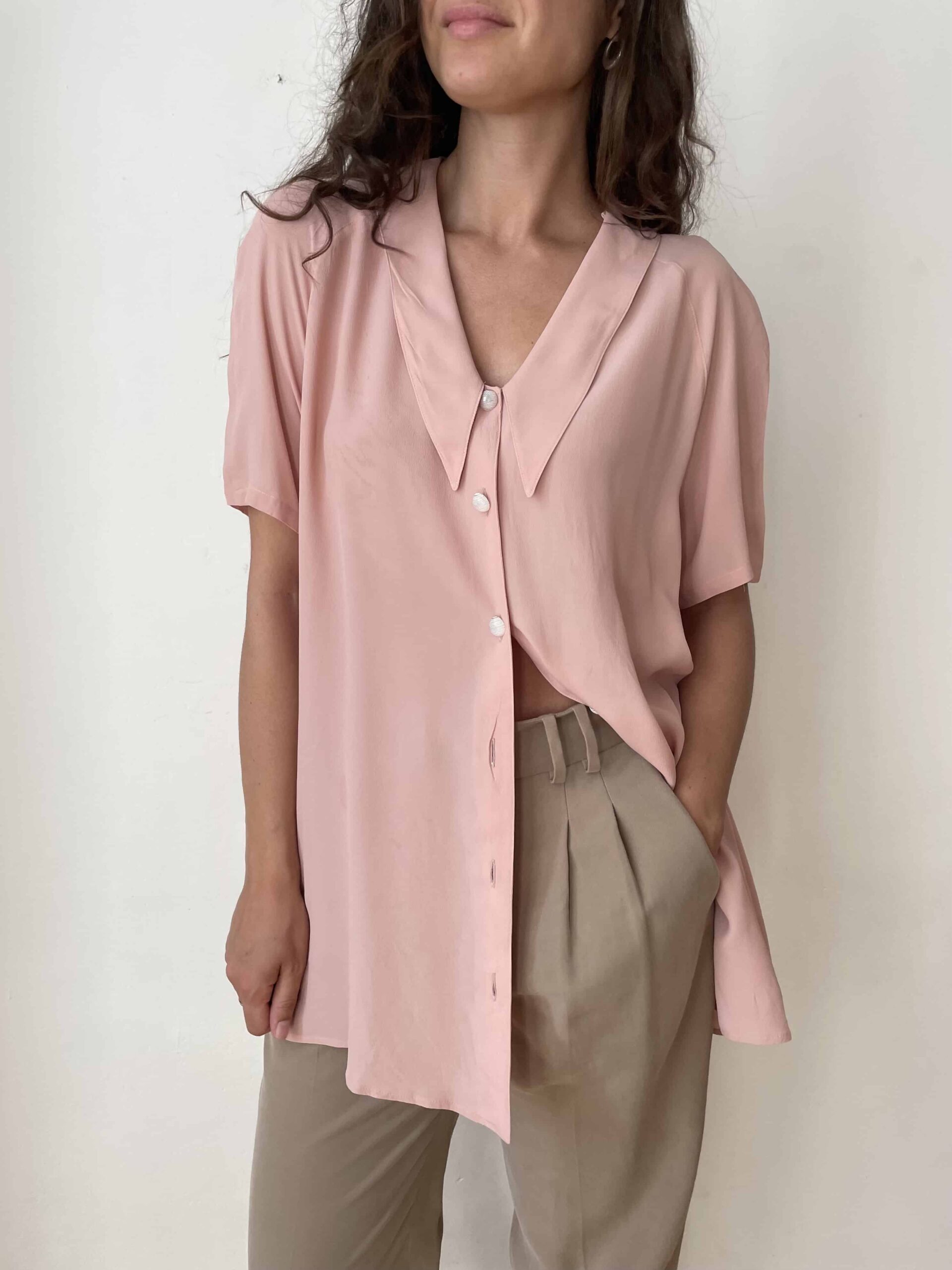 Maxi camicia vintage misto seta rosa e maxi colletto