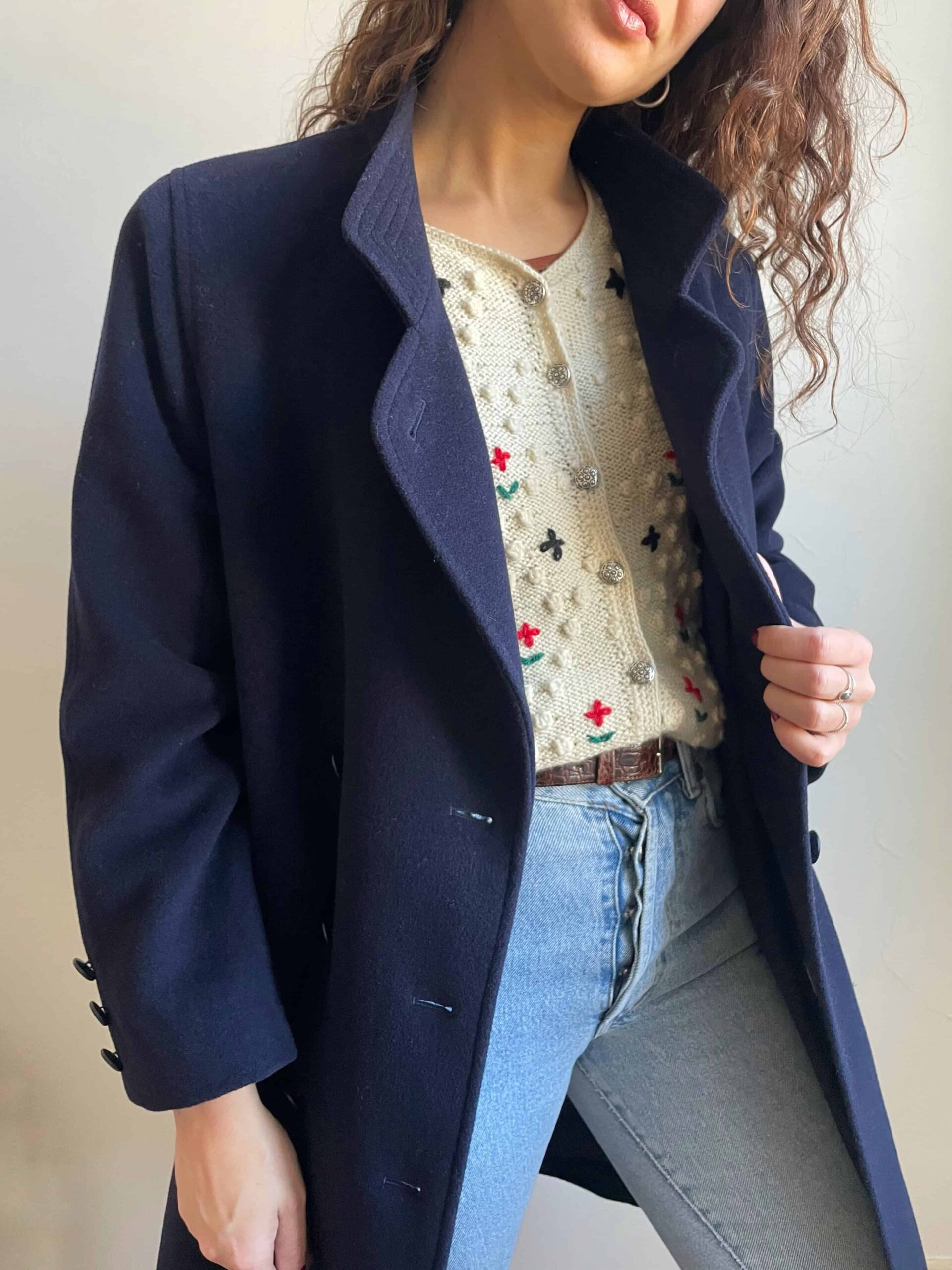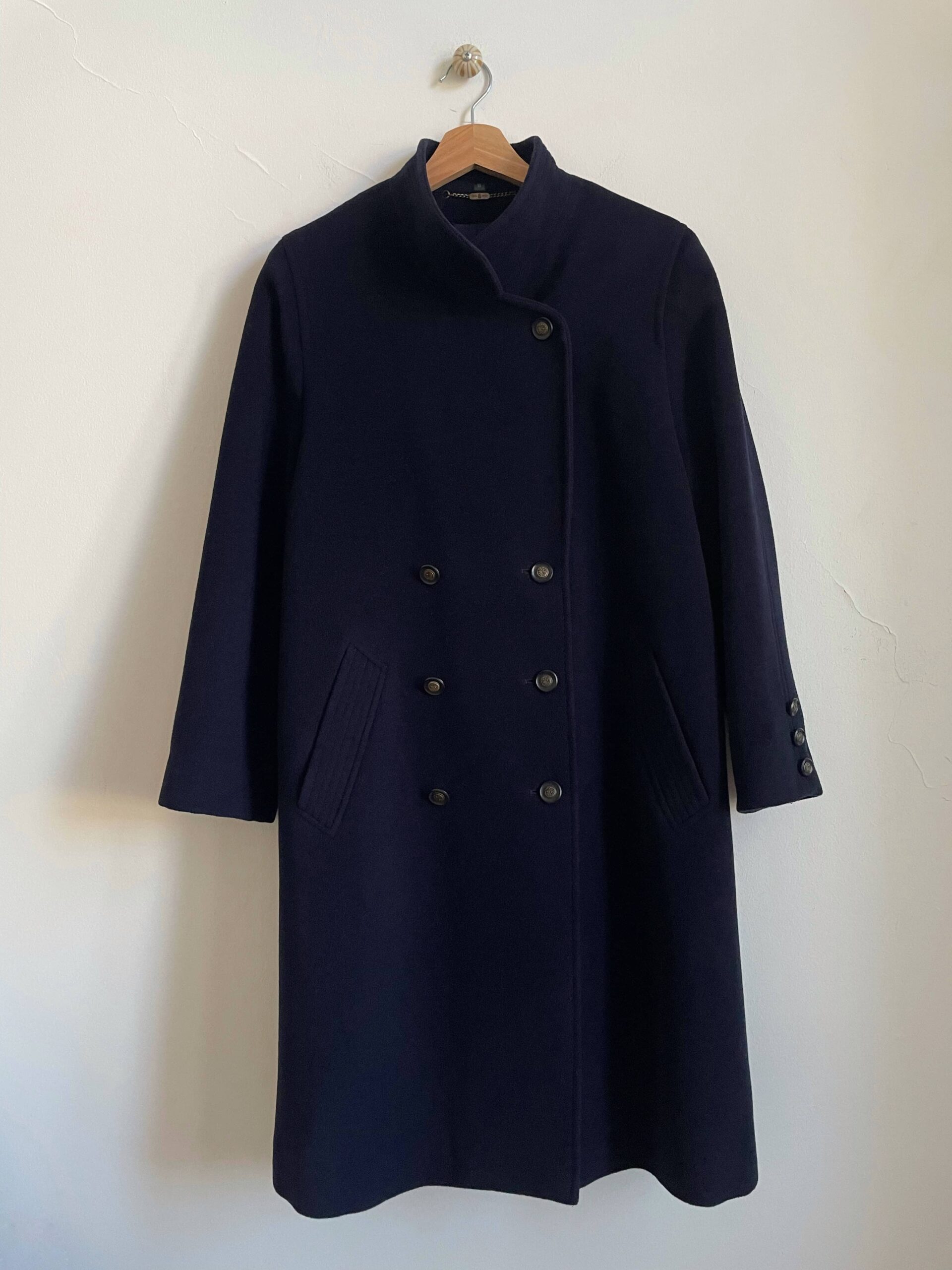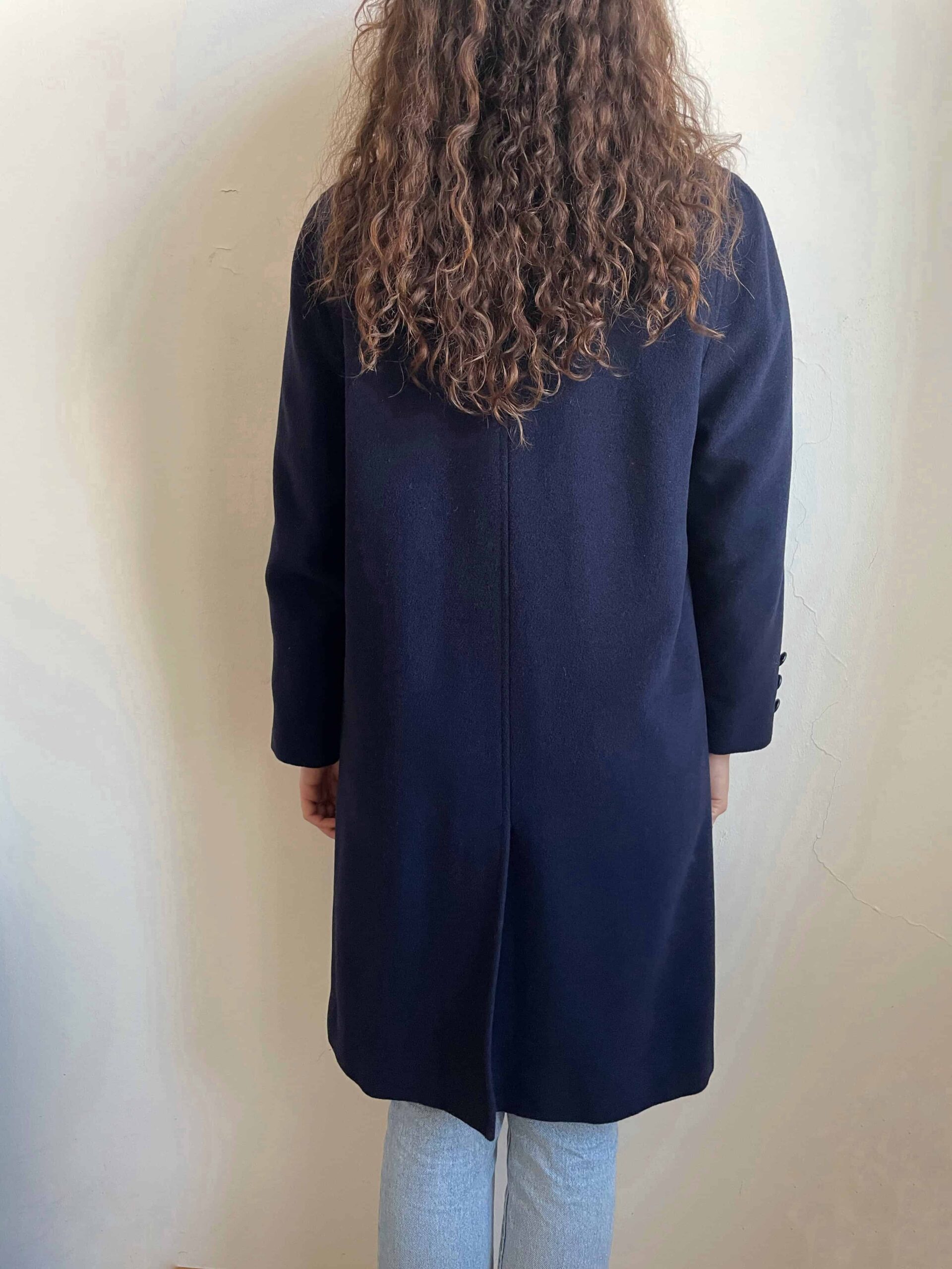 Cappotto vintage in lana e cashmere blu notte