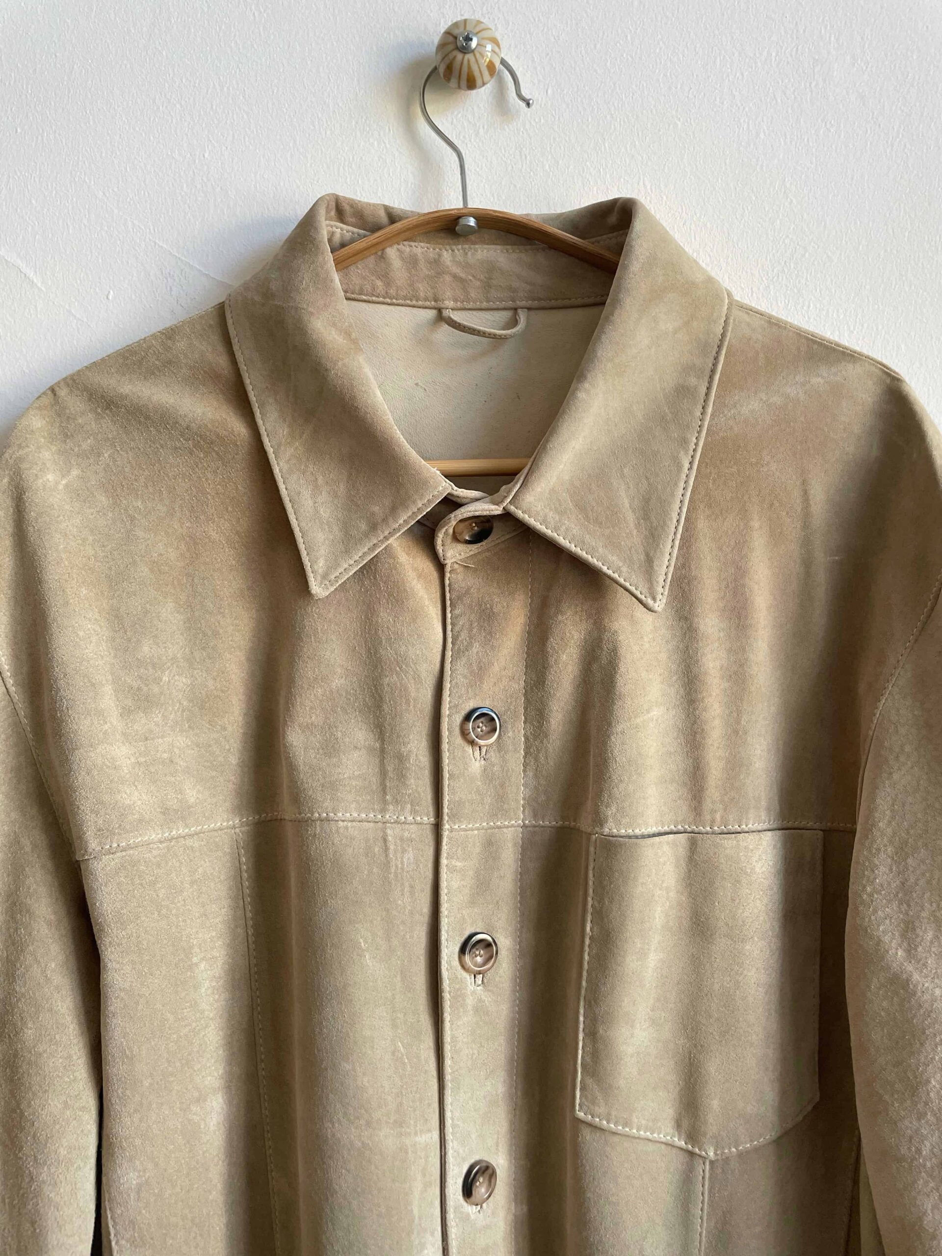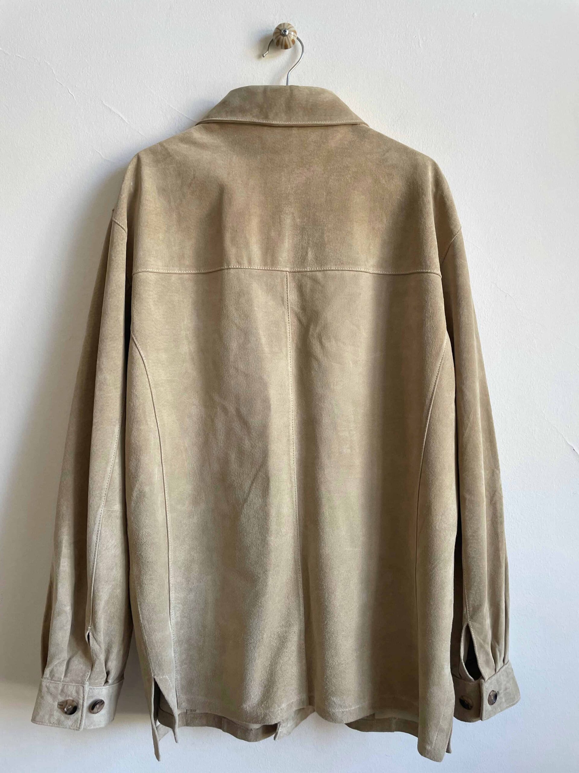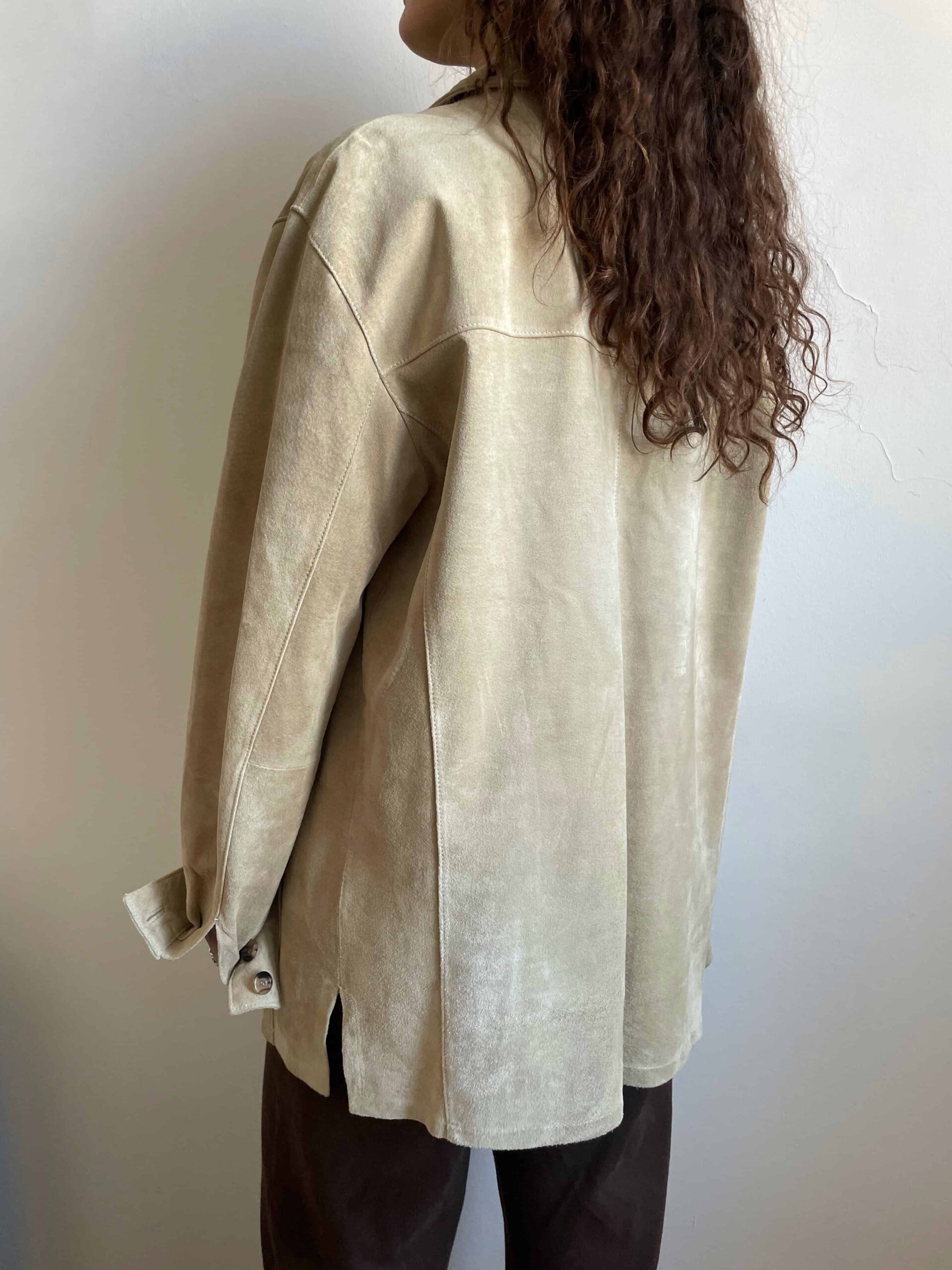 Giacca vintage oversize in vera pelle scamosciata beige chiaro