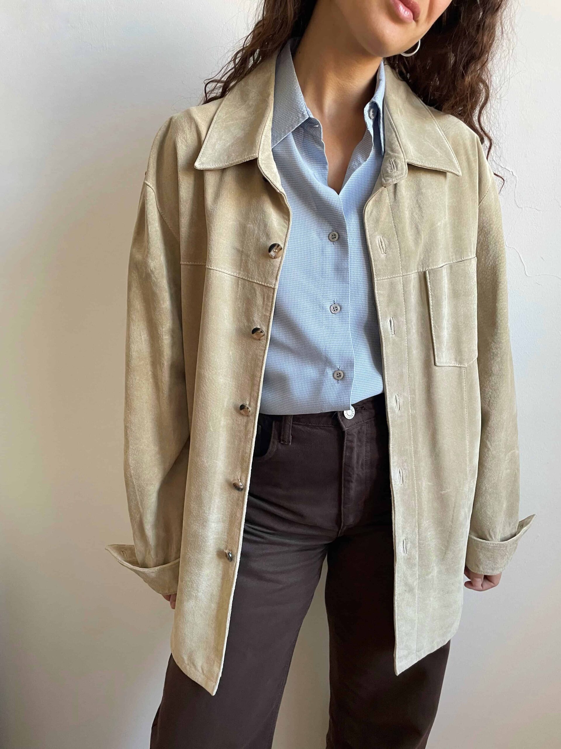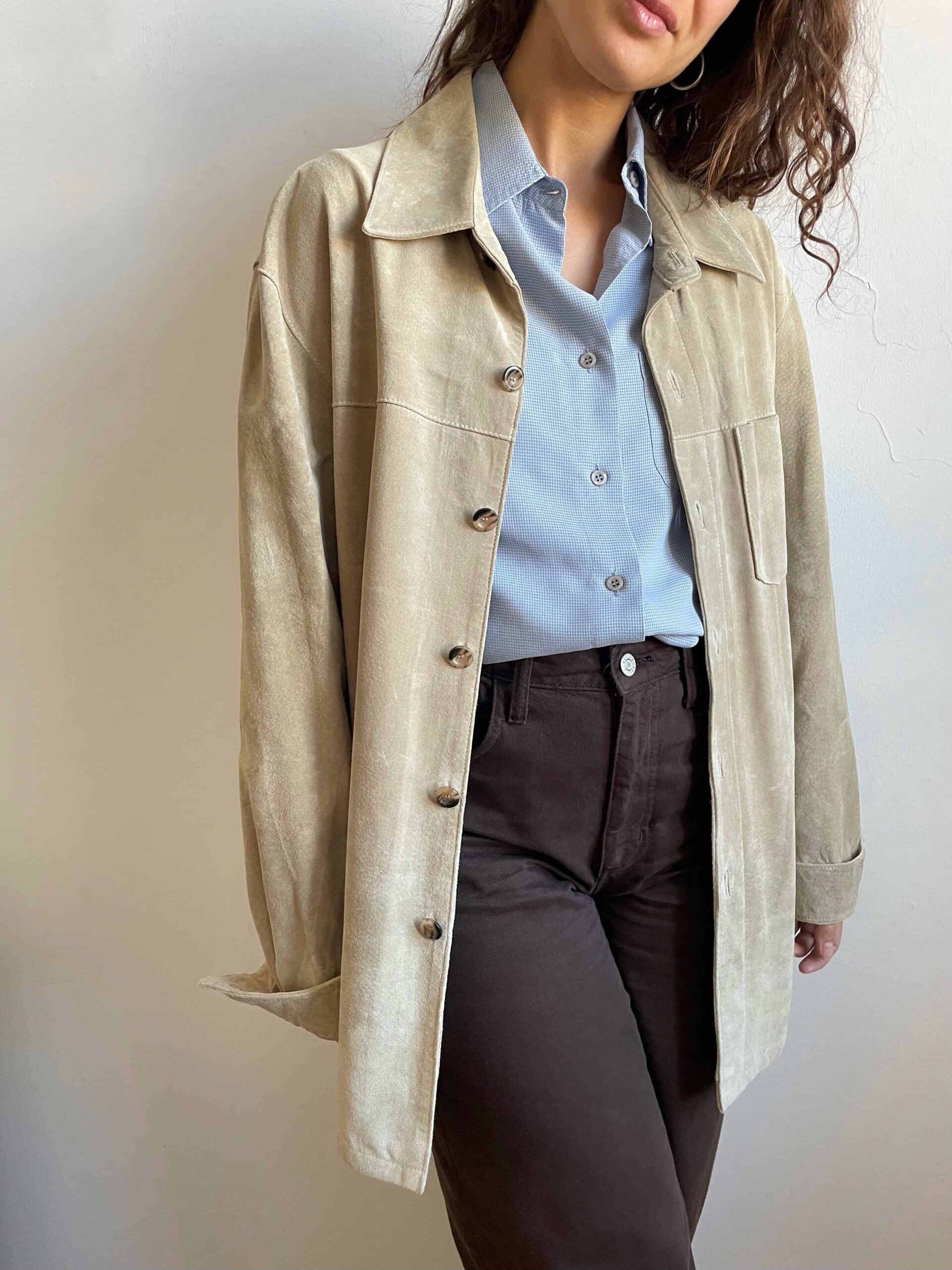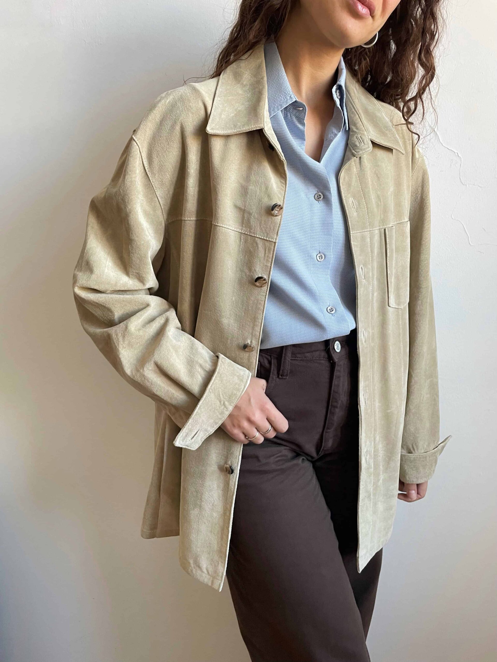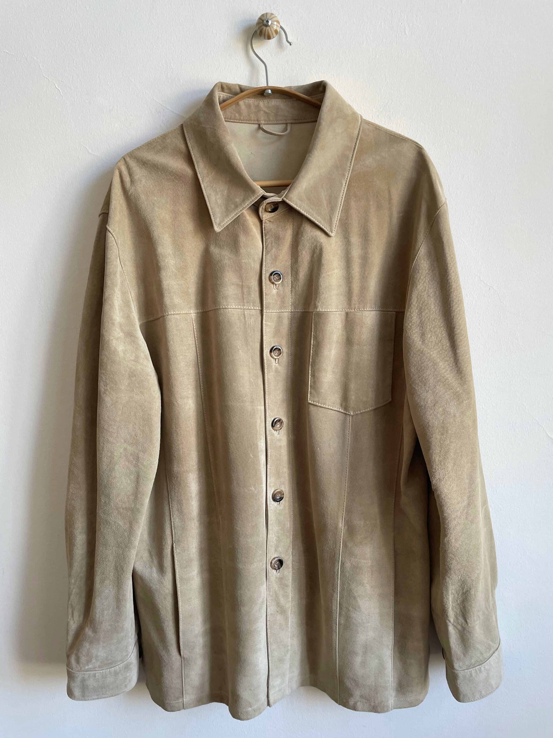 Giacca vintage oversize in vera pelle scamosciata beige chiaro